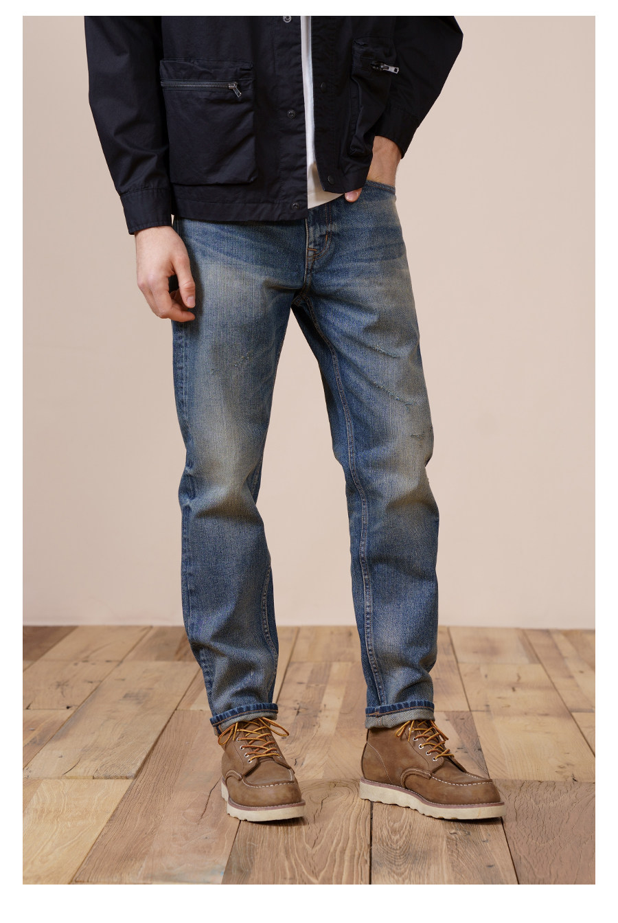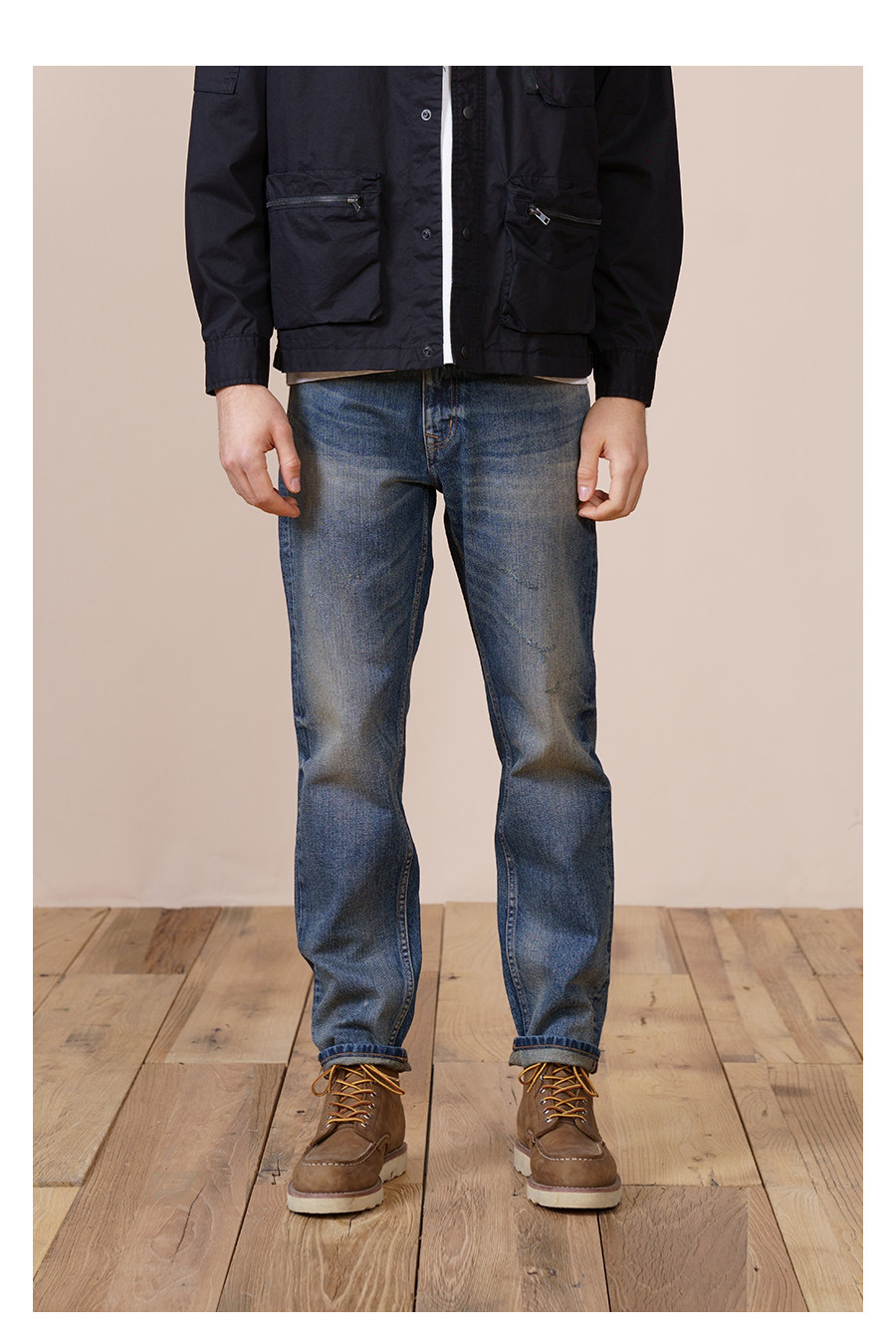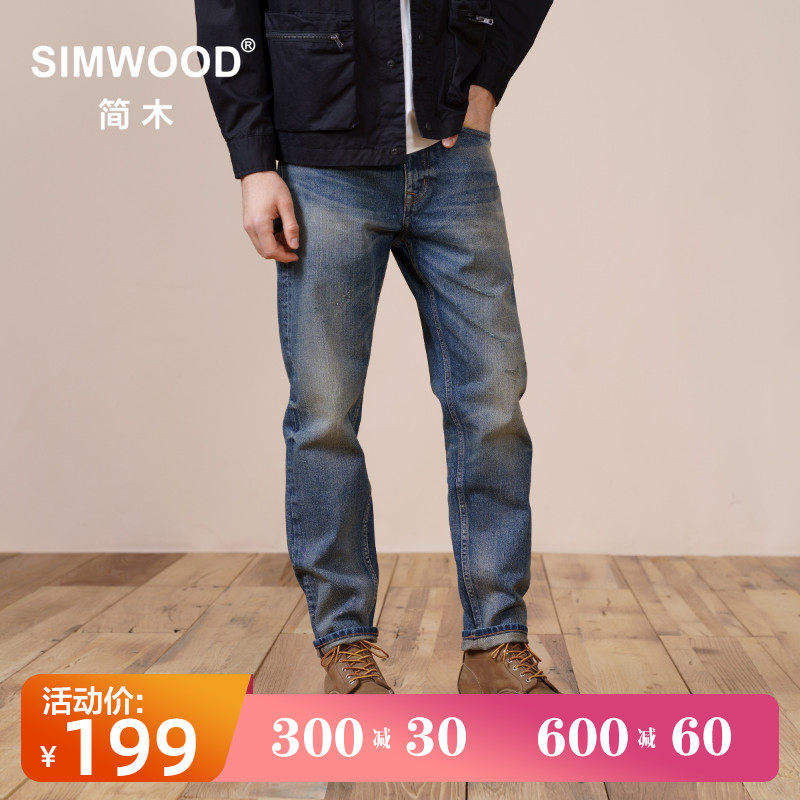 Simwood Комбинированные осенние джинсовые джинсы, свободный прямой крой