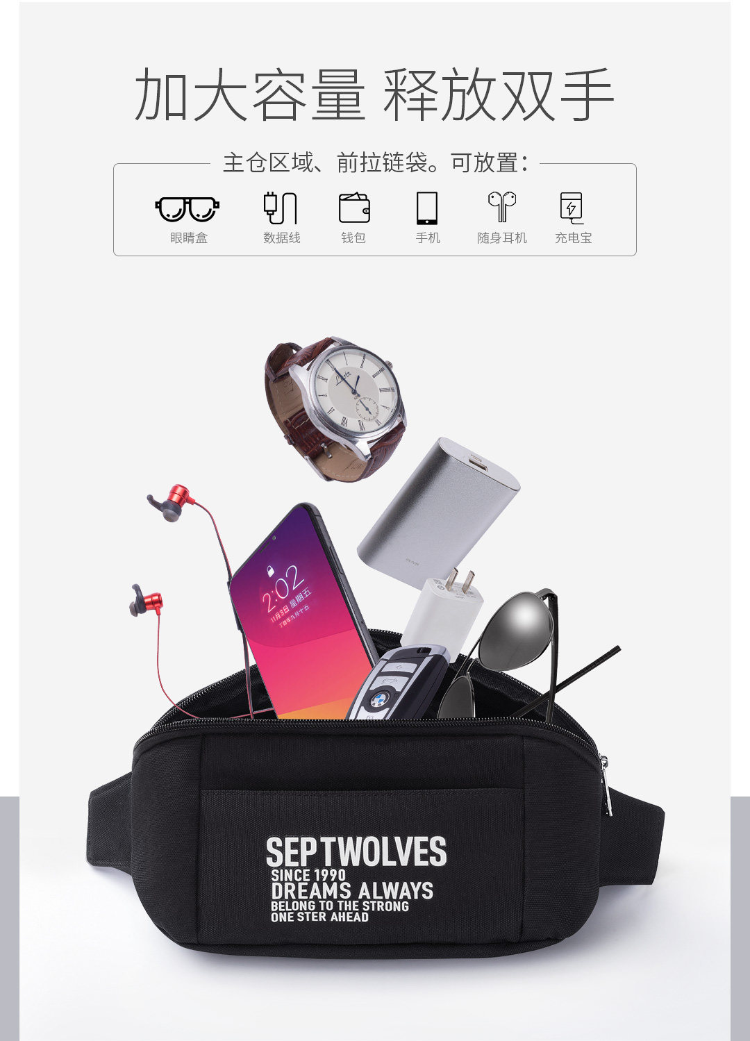 Septwolves, универсальная нагрудная сумка, вместительная и большая спортивная поясная сумка, сумка для телефона, портативная сумка на одно плечо, для бега