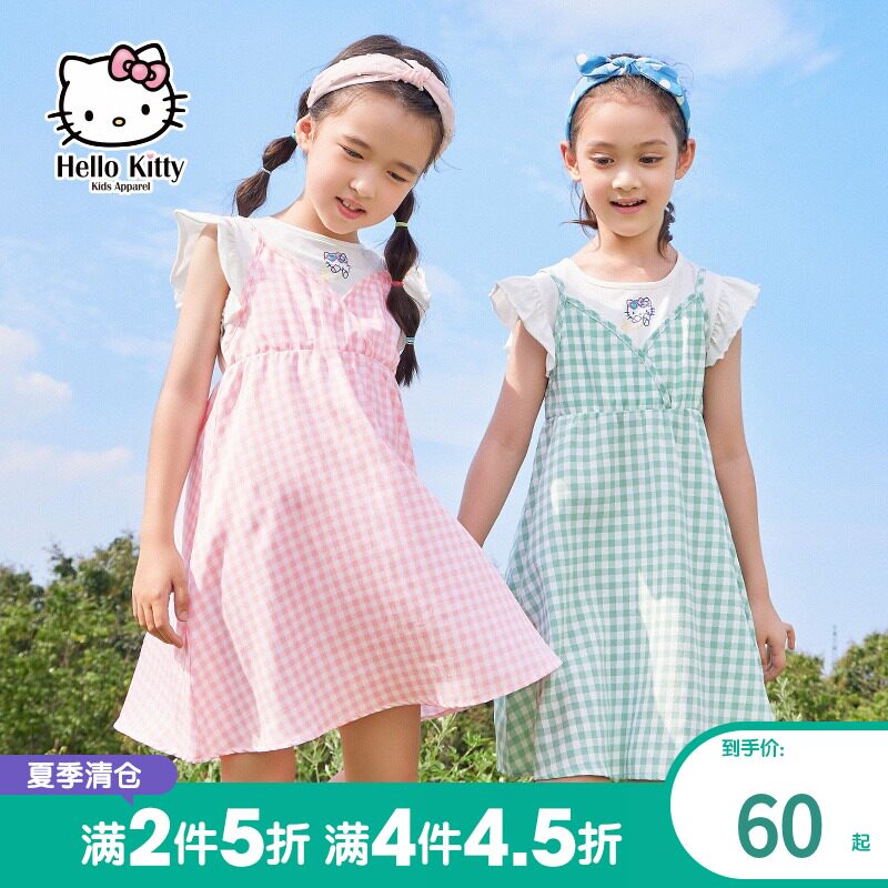 Hello Kitty, летнее платье с коротким рукавом, детская одежда, подходит для подростков