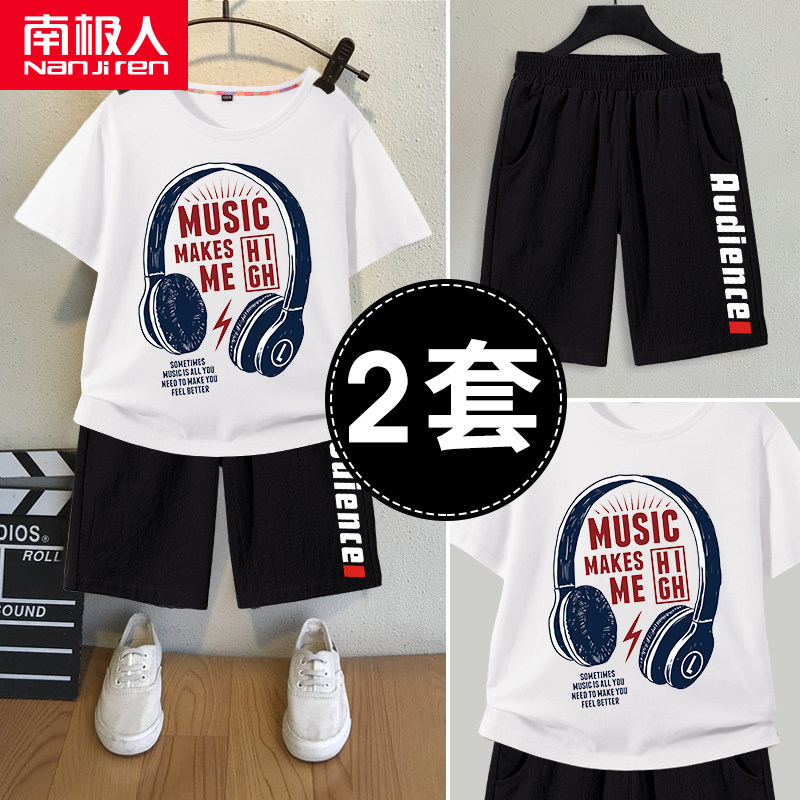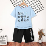 Летняя одежда, летний комплект для мальчиков, 2021 года, подходит для подростков, короткий рукав, в западном стиле