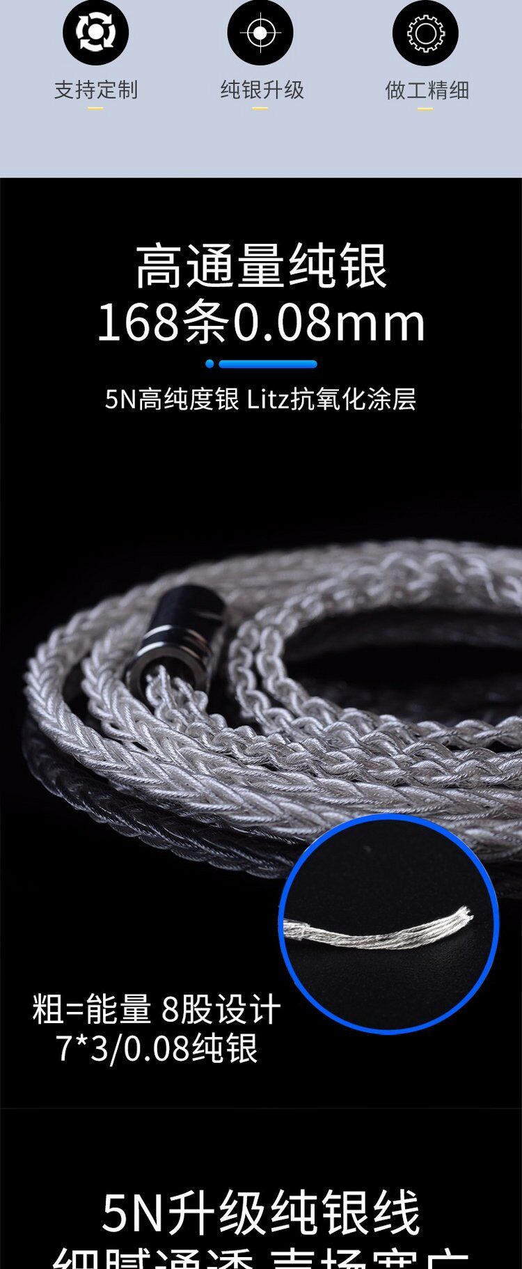 Yongse/yangshi Восемьдер стерлингового серебряного серебряного Litz Structure SE846 T8ie Xie Lantu IE80S IE40PRO IE500PRO IM04 2.5 4.4 Сбалансированные наушники.