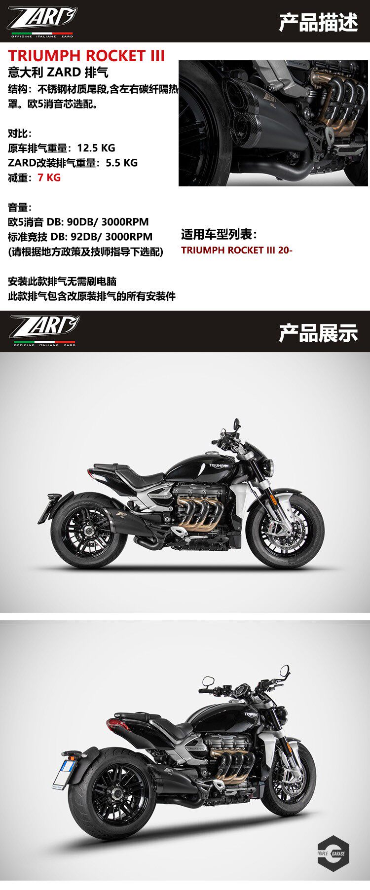 Итальянский Zard подходит для новой модели Triumph Rocket 3 Rocket III выхлопного хвоста