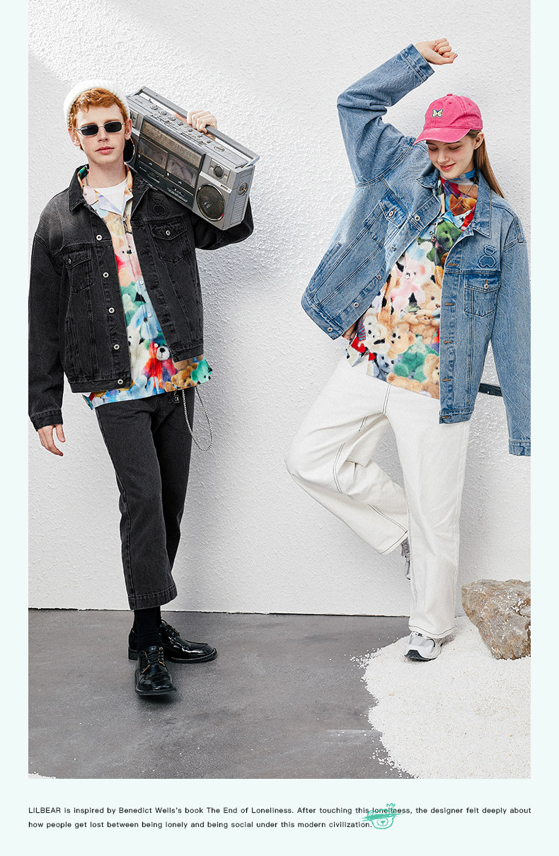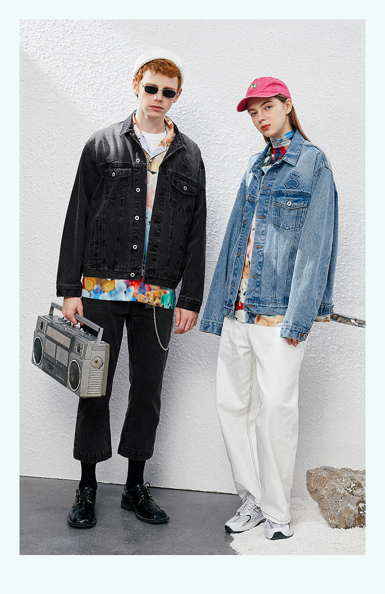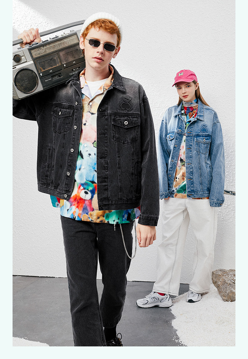 Джинсовая ретро трендовая куртка, с медвежатами, оверсайз, в американском стиле, для влюбленных