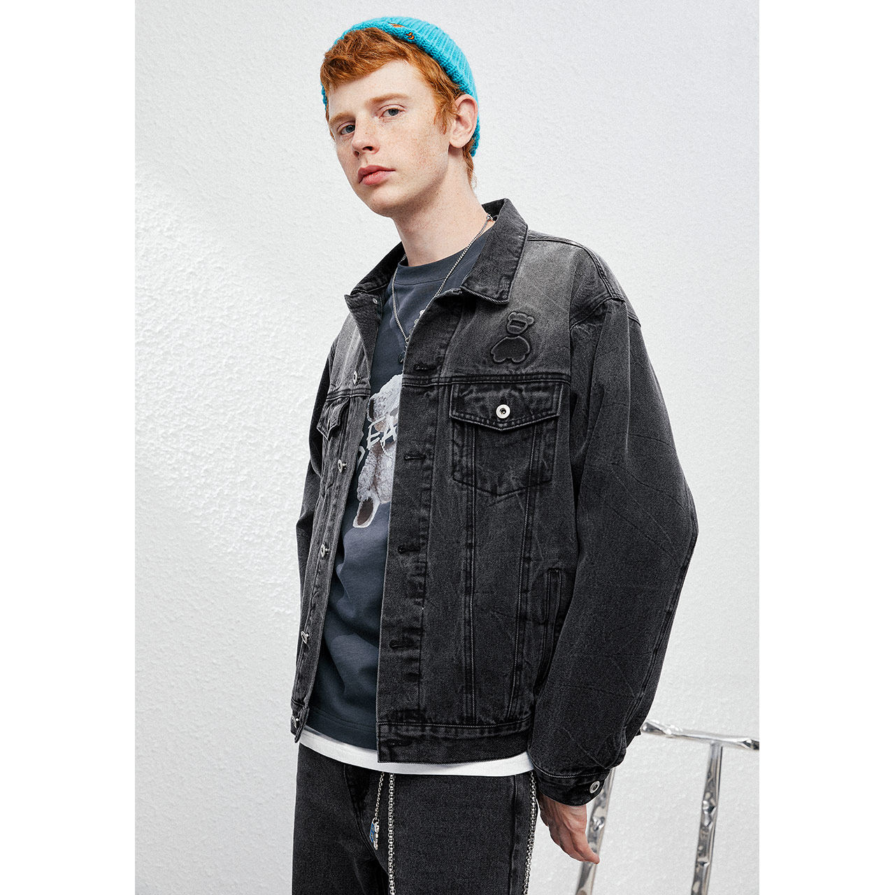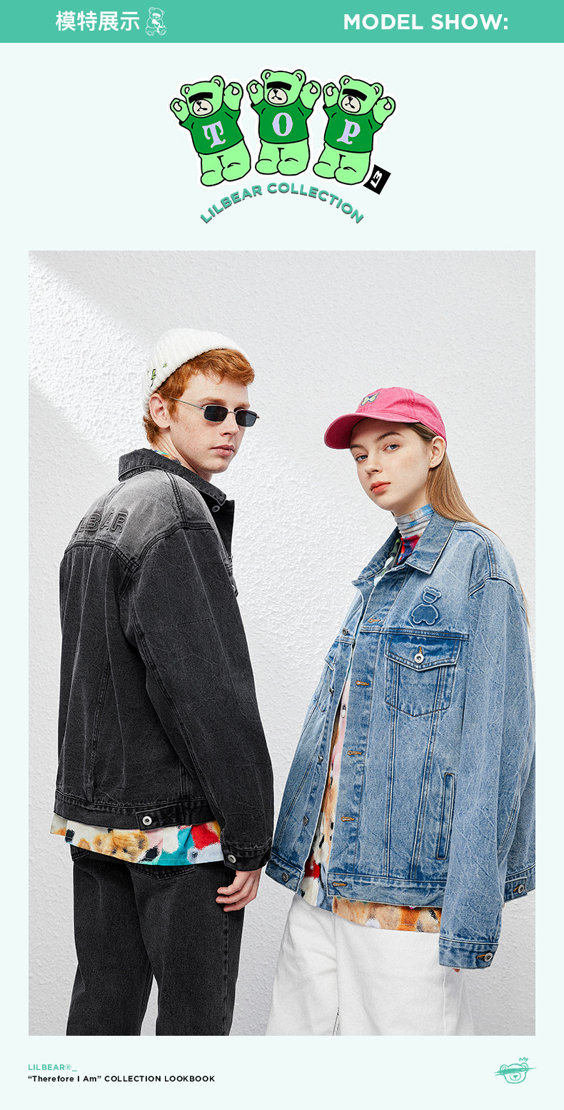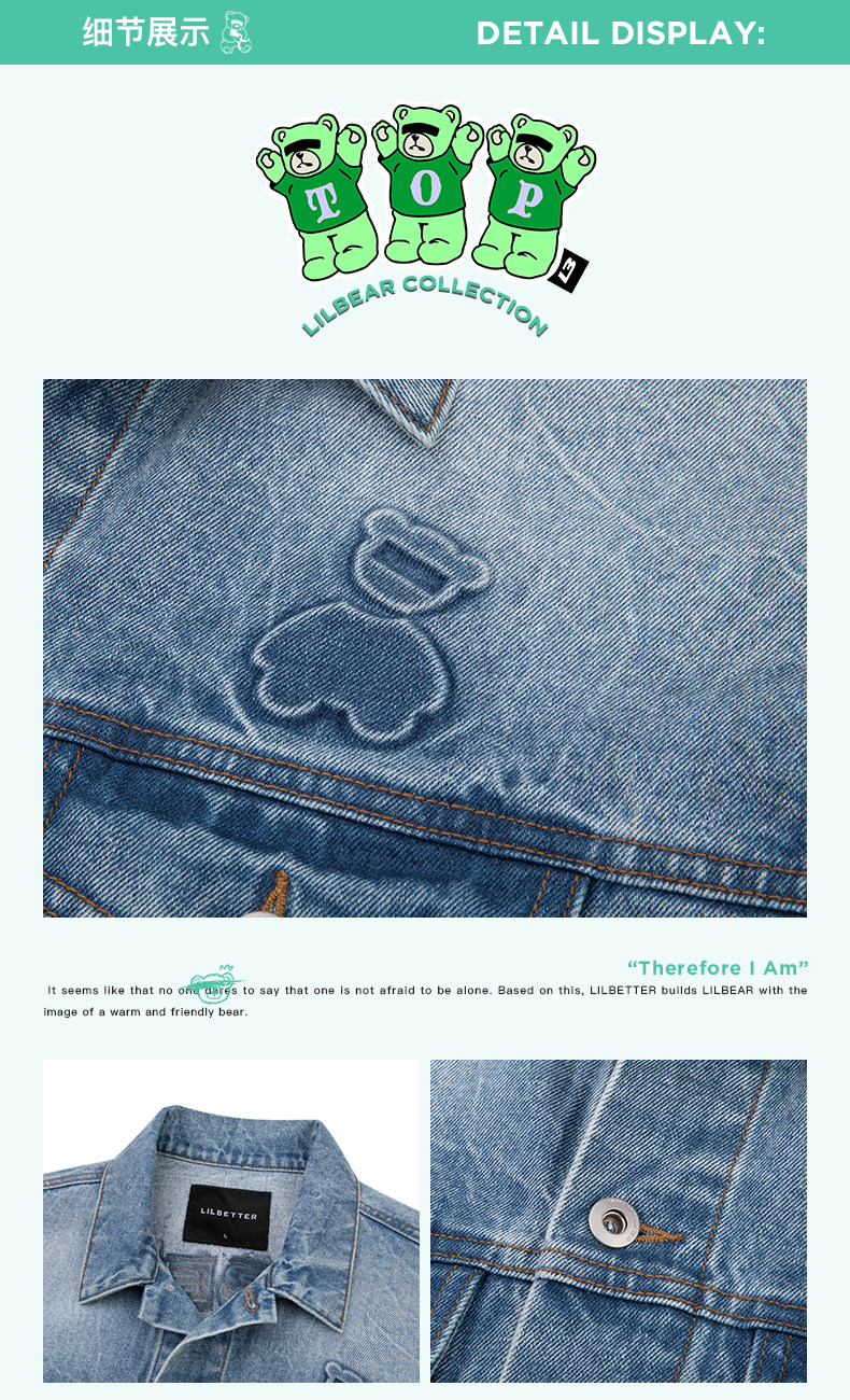 Джинсовая ретро трендовая куртка, с медвежатами, оверсайз, в американском стиле, для влюбленных