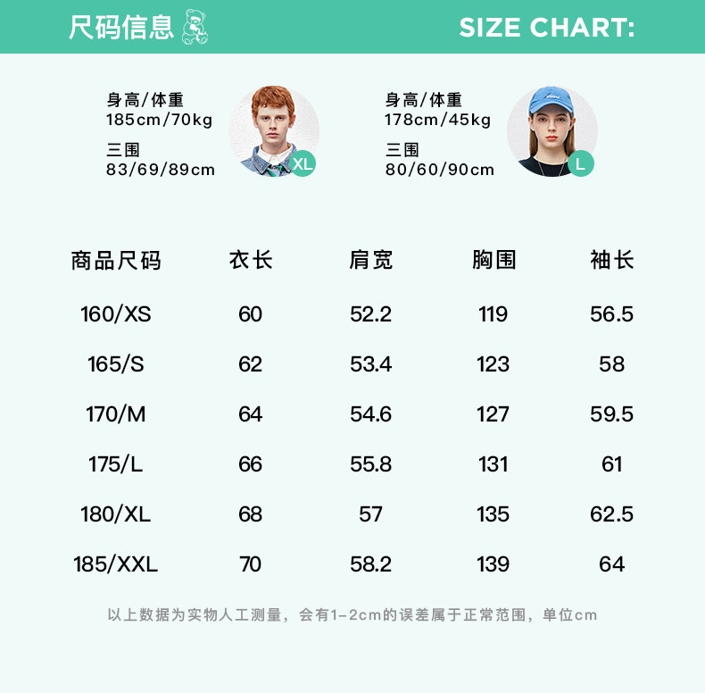 - = 185/XXL 175/L 180/XL