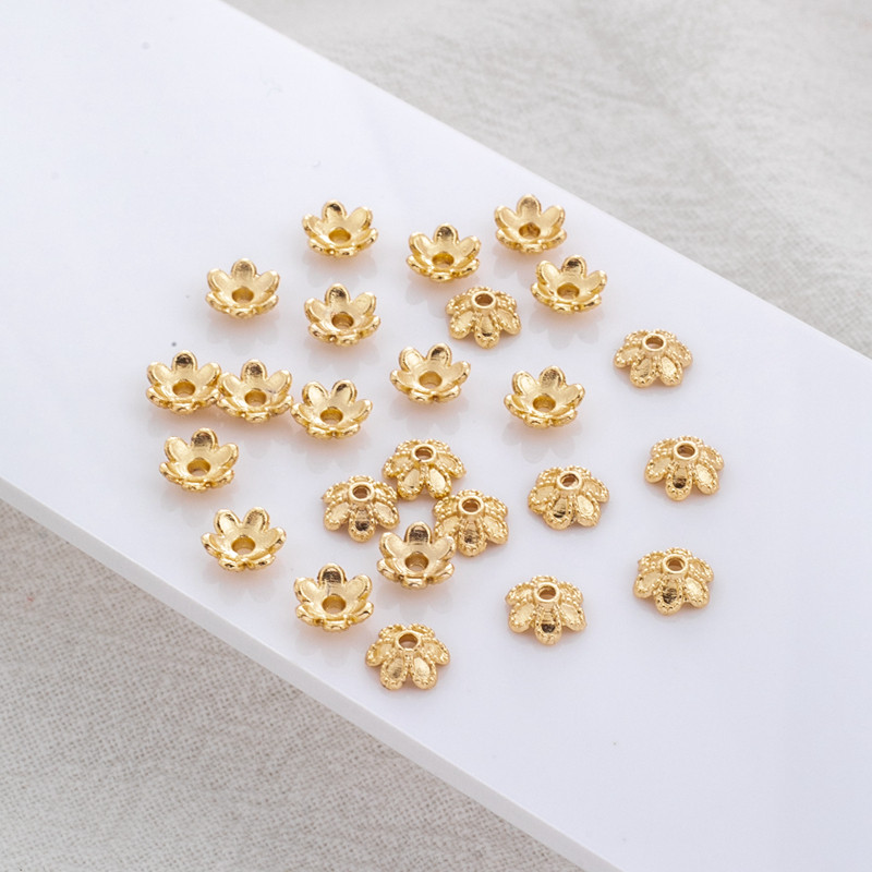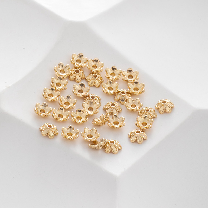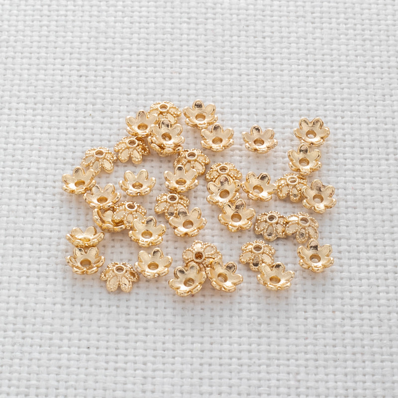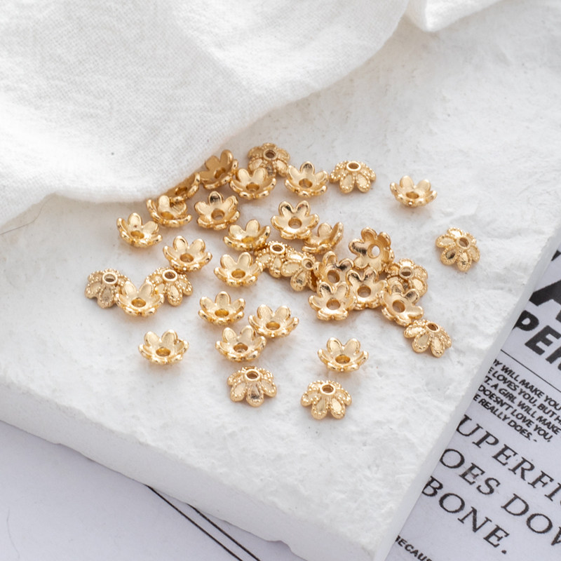 Аксессуар в форме цветка, аксессуары, браслет из бисера, 14 карат, золотой цвет, 6мм, DIY, 50 шт