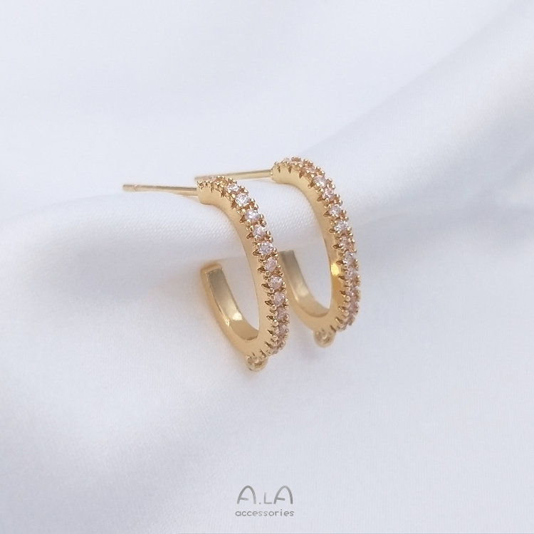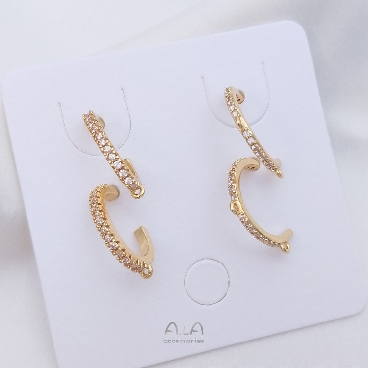 - Полукруглые серьги-гвоздики с двойной подвеской из циркона, серебряные серьги-гвоздики с иглами, 1 пара из 2 штук
