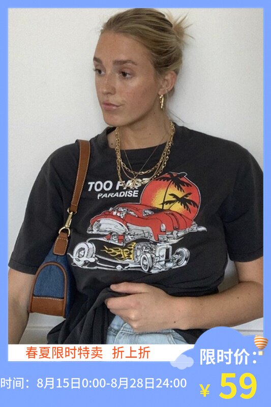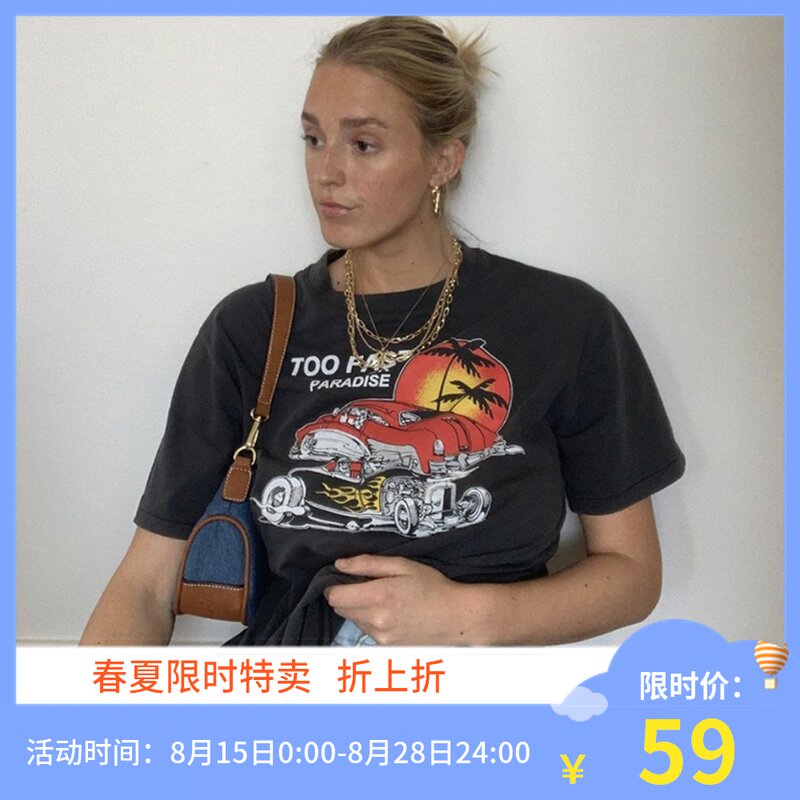 Tide, ретро черная футболка, в американском стиле, свободный крой