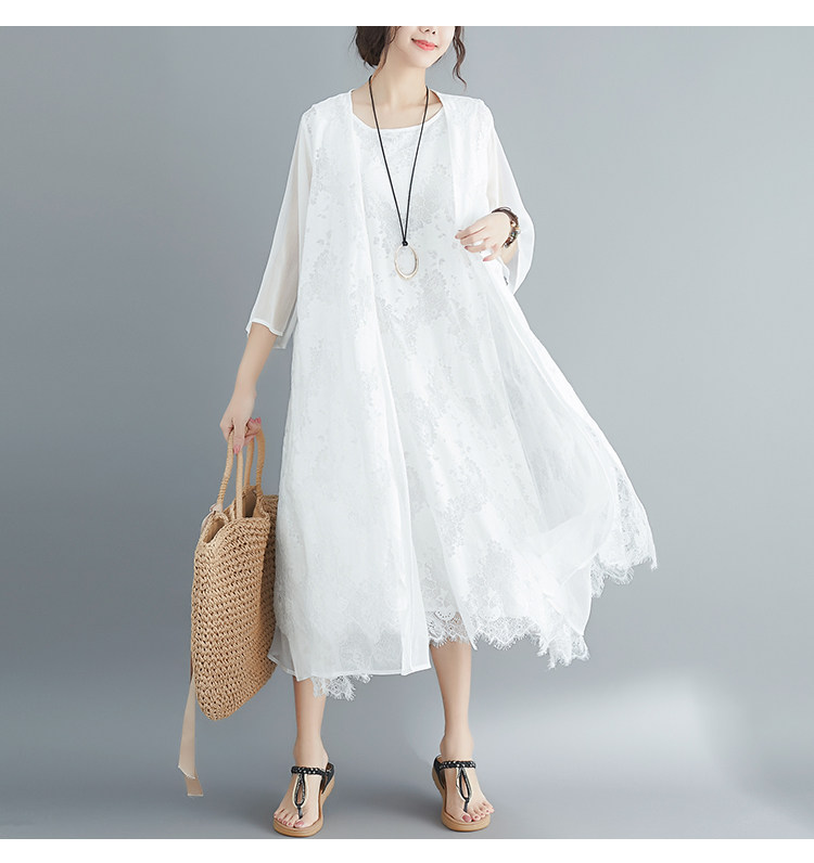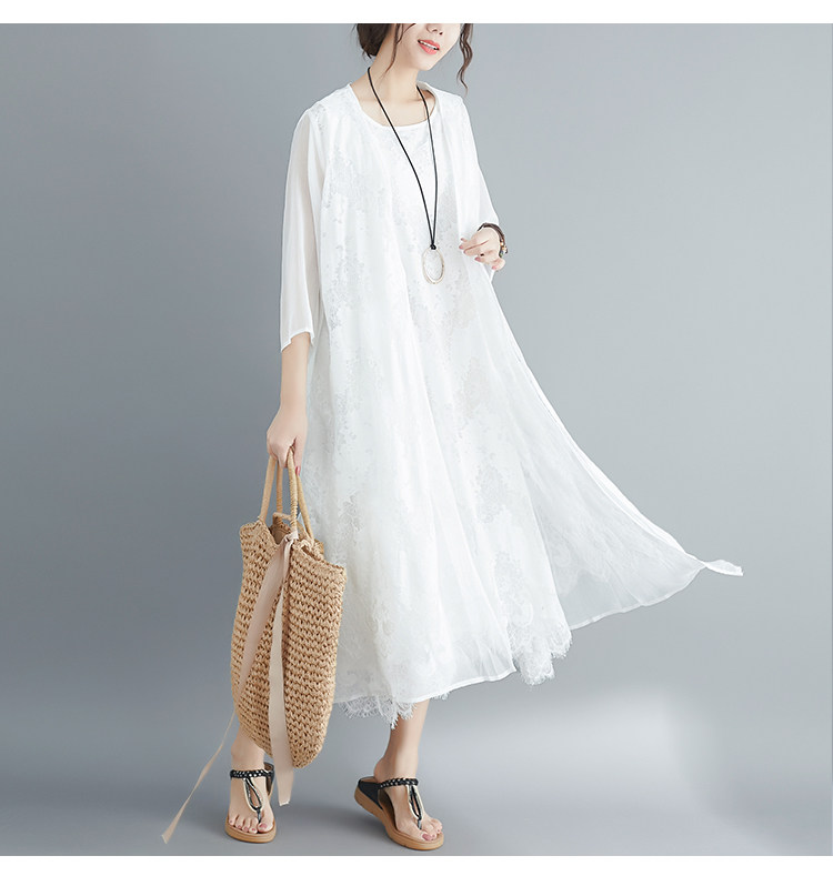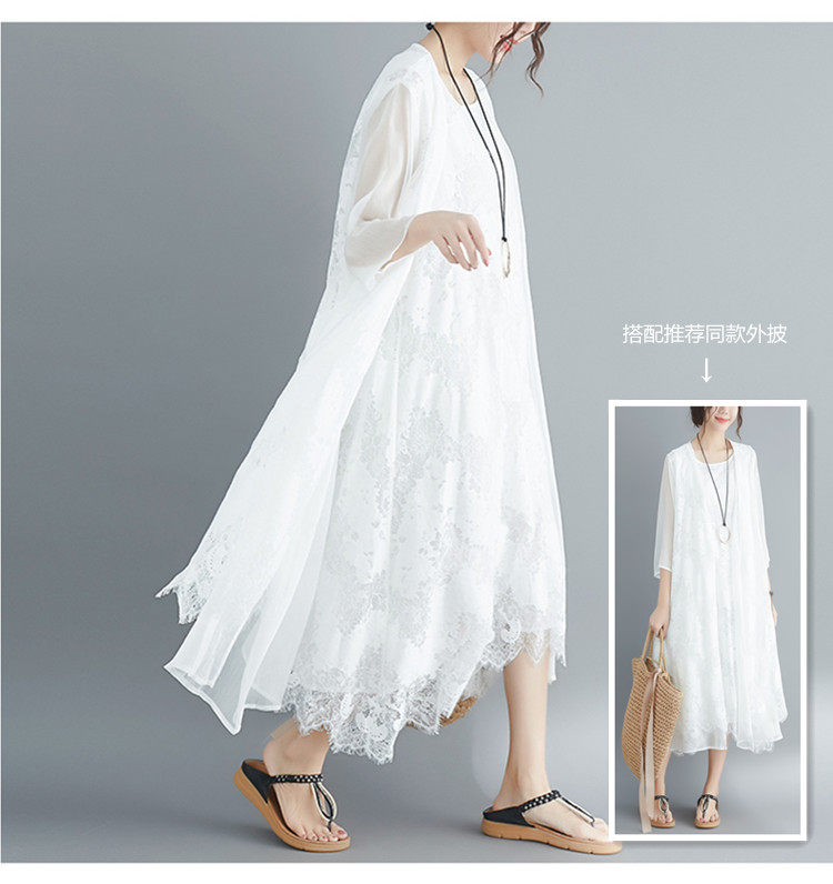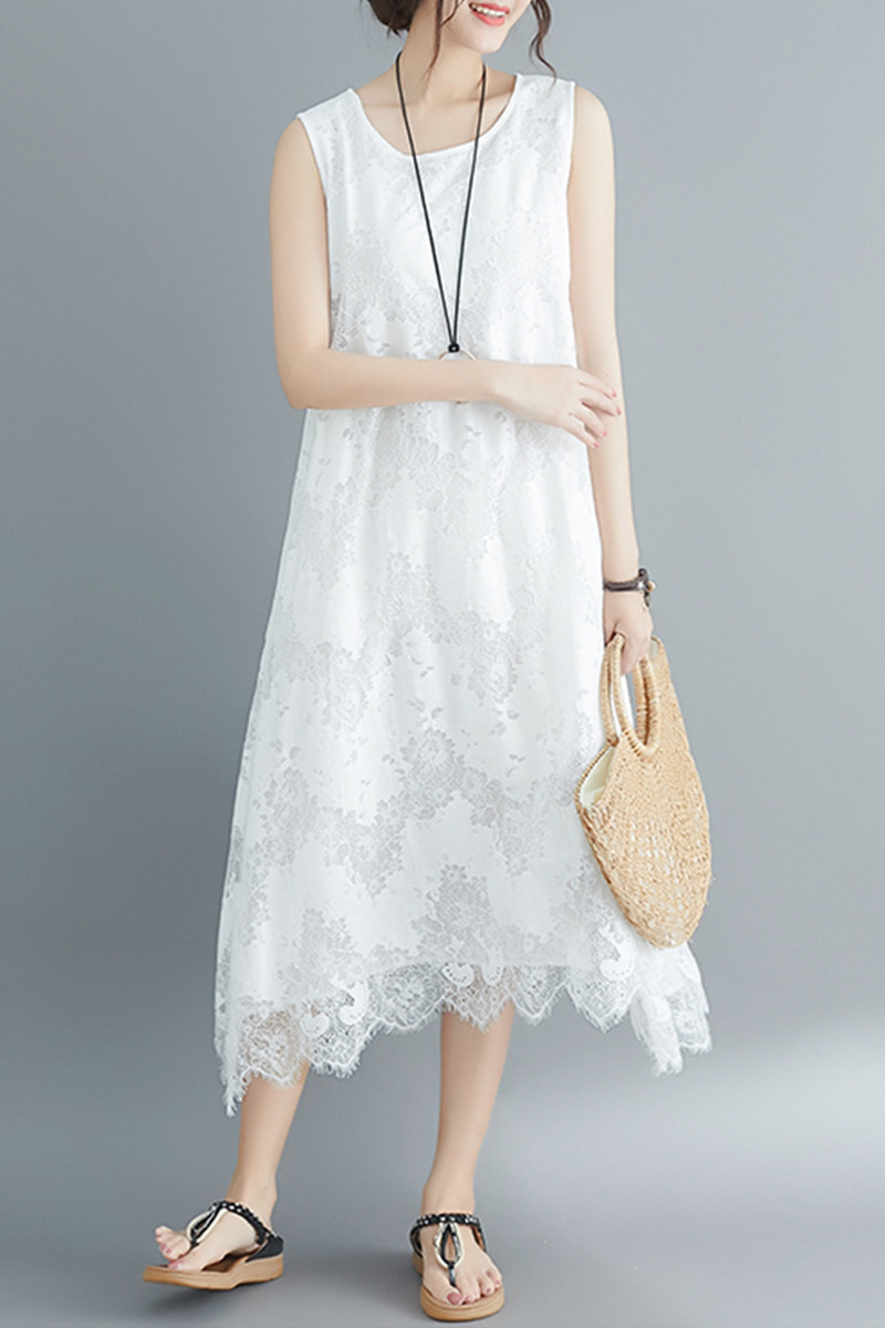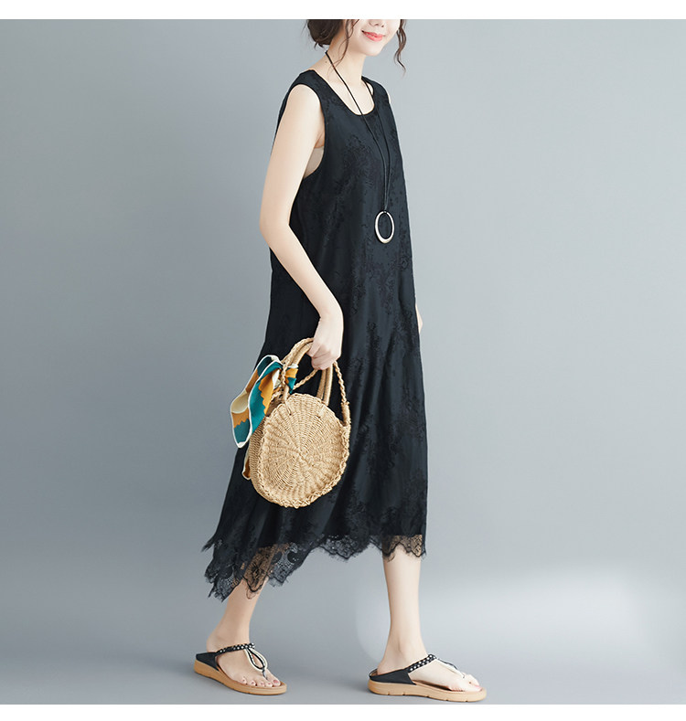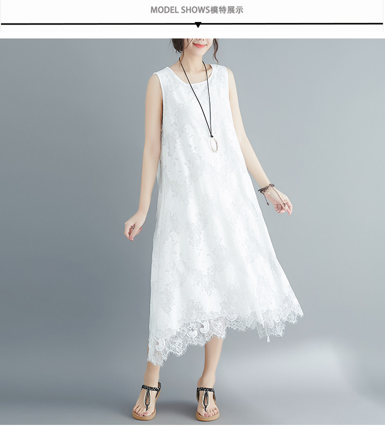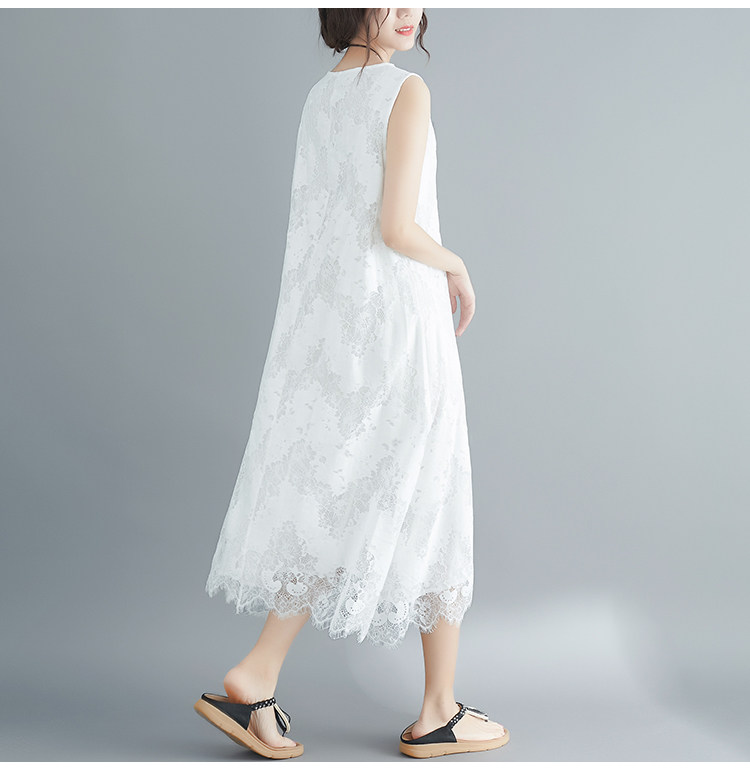Летняя одежда, кружевное платье без рукавов без рукавов, длинная юбка, свободный крой, А-силуэт, большой размер, средней длины, городской стиль