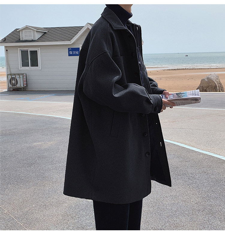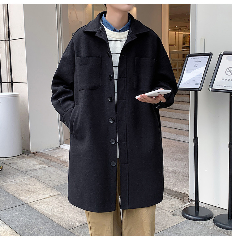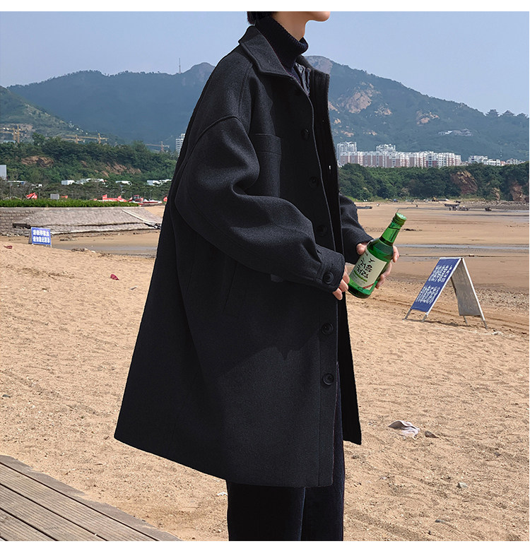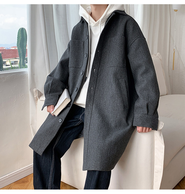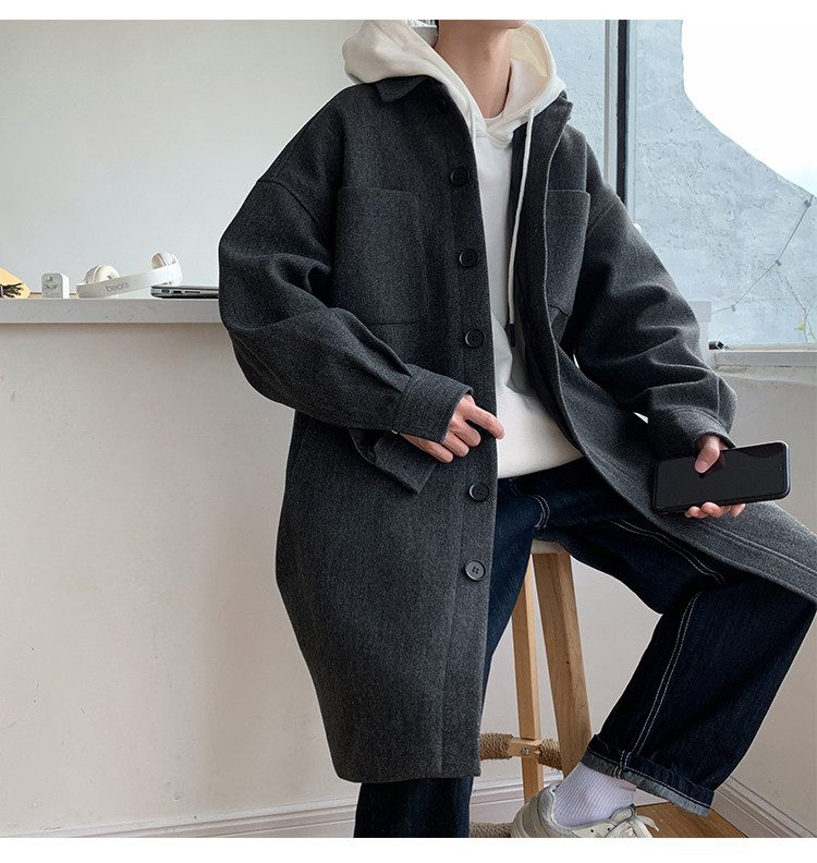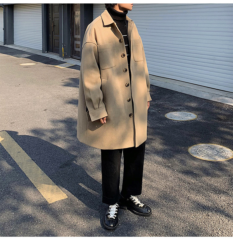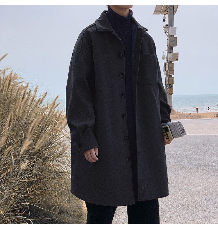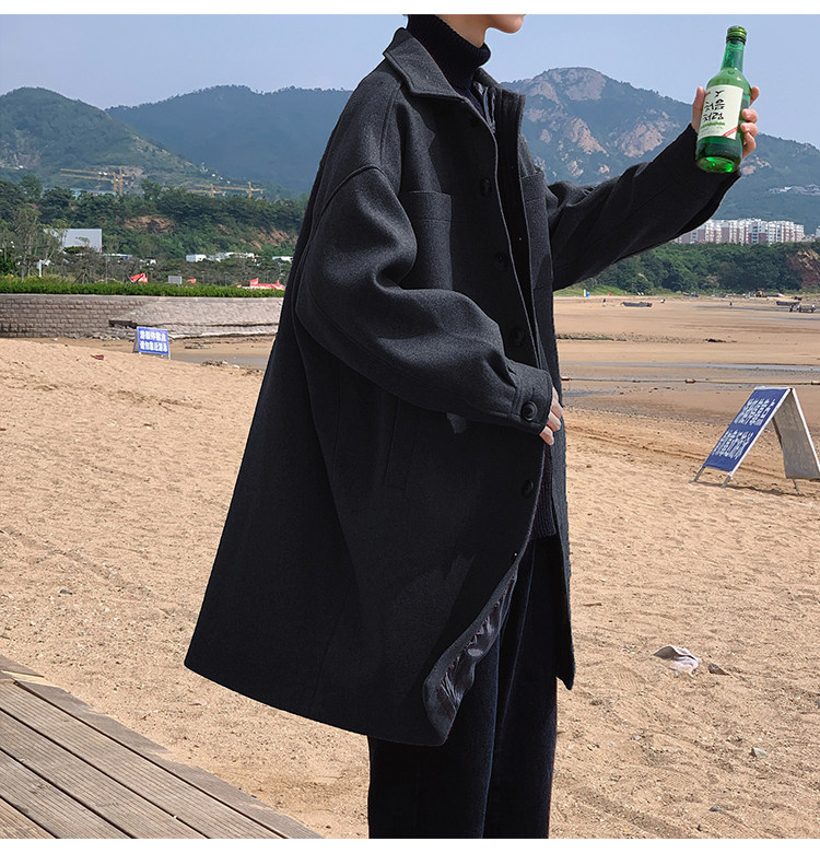 Lee, демисезонное трендовое шерстяное пальто, плащ, длинная куртка, в корейском стиле, оверсайз
