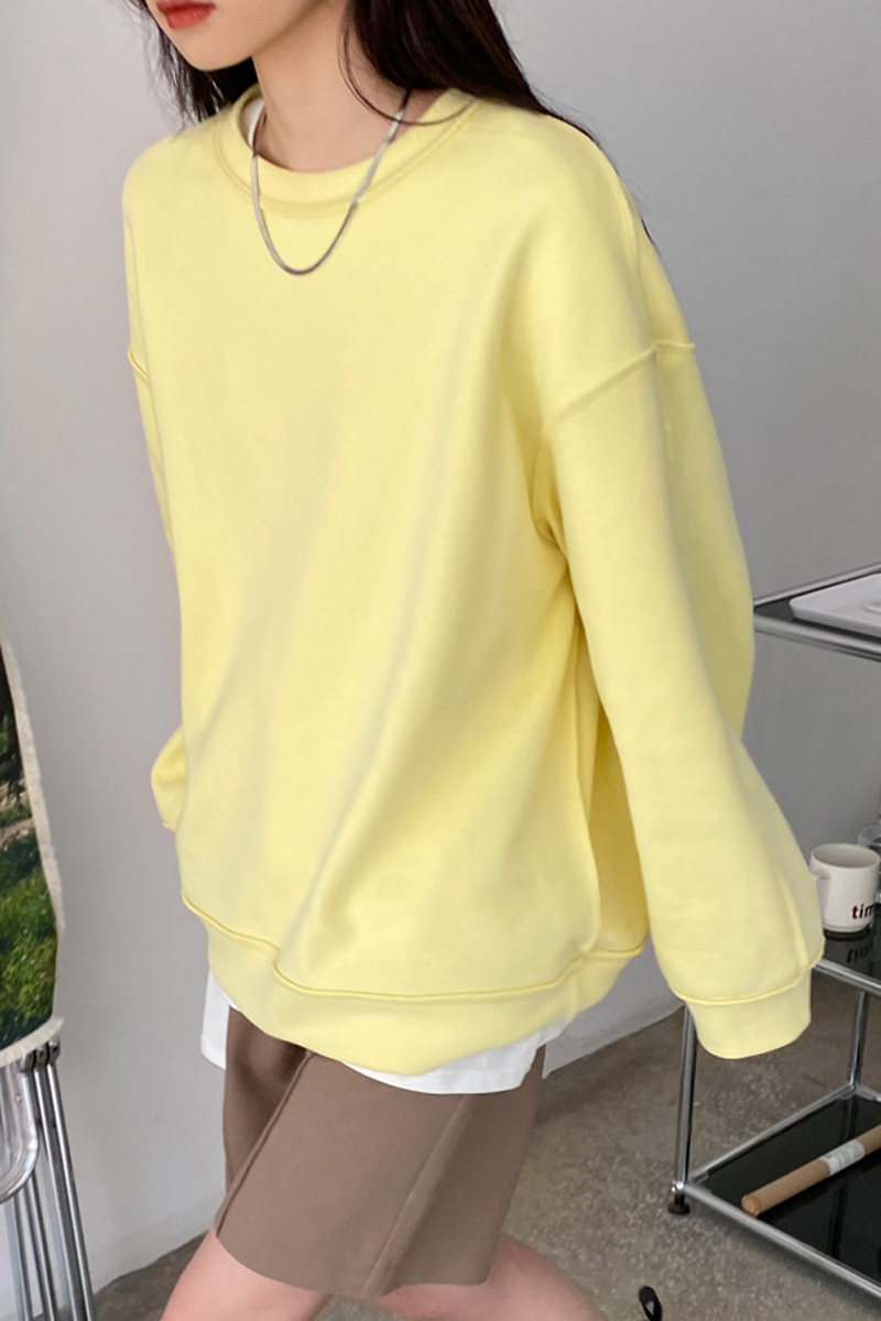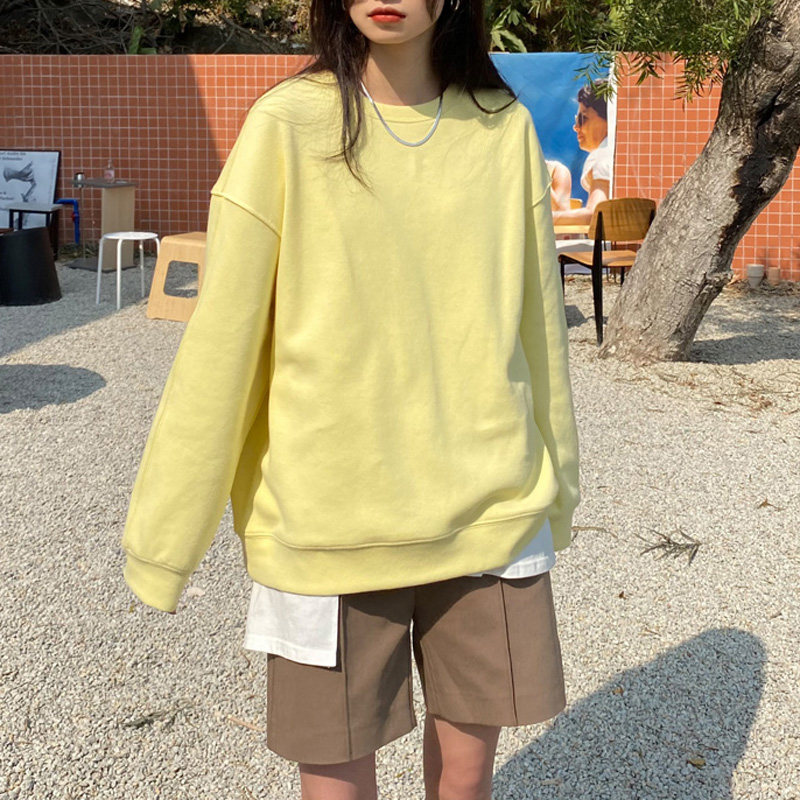 Кремовая желтая толстовка для школьников и студентов с круглым воротником, оверсайз