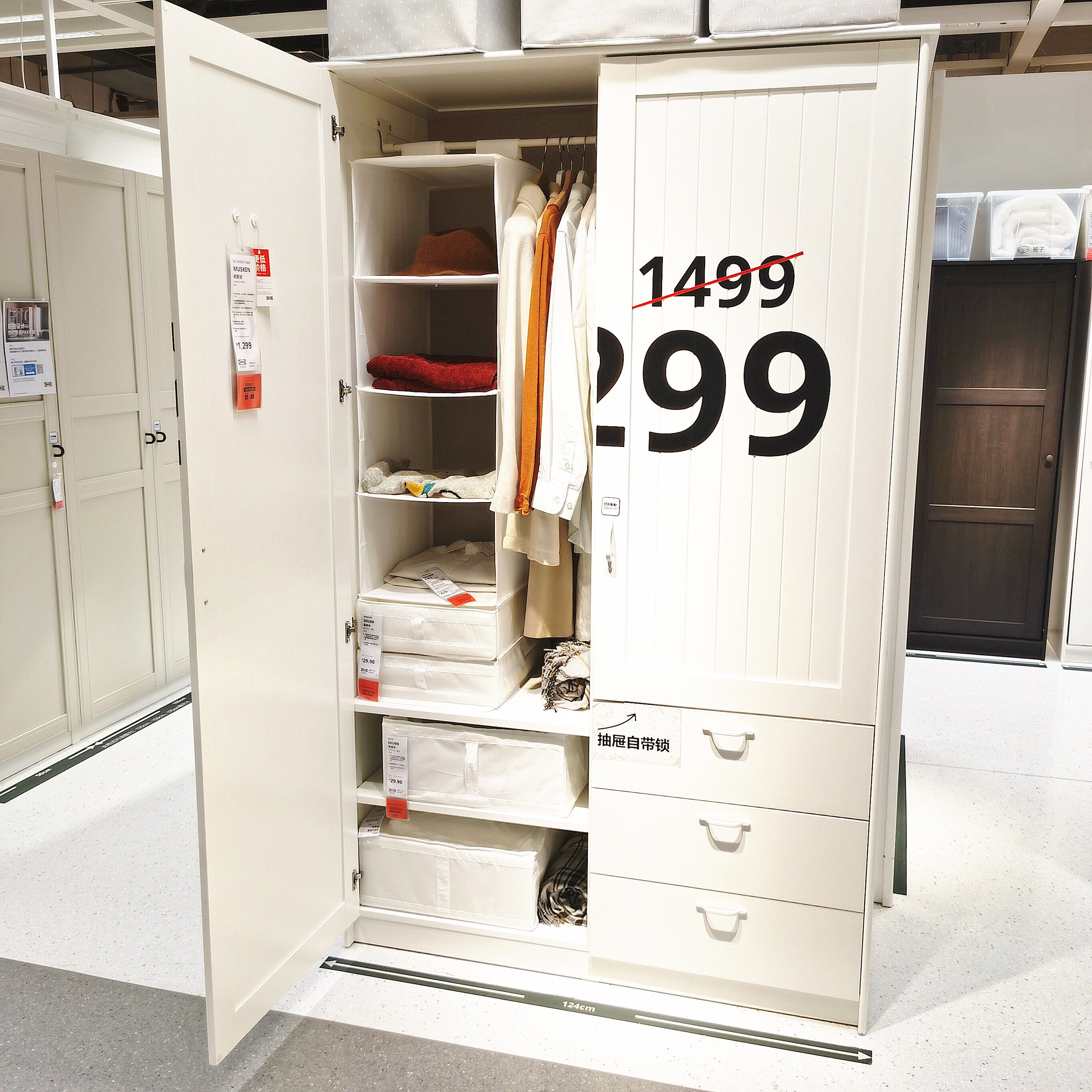 Jinan Onemic Ikea Ikea, купия Musan Kenwa Wardrobe Slisting Doorse Economy Economy Простой ящик для гардероба белый