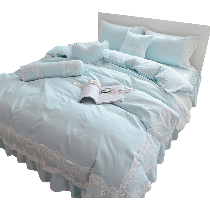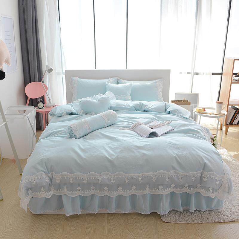 Хлопковый комплект для принцессы, пододеяльник, покрывало, простой и элегантный дизайн, кружевное платье, в корейском стиле, 4 предмета