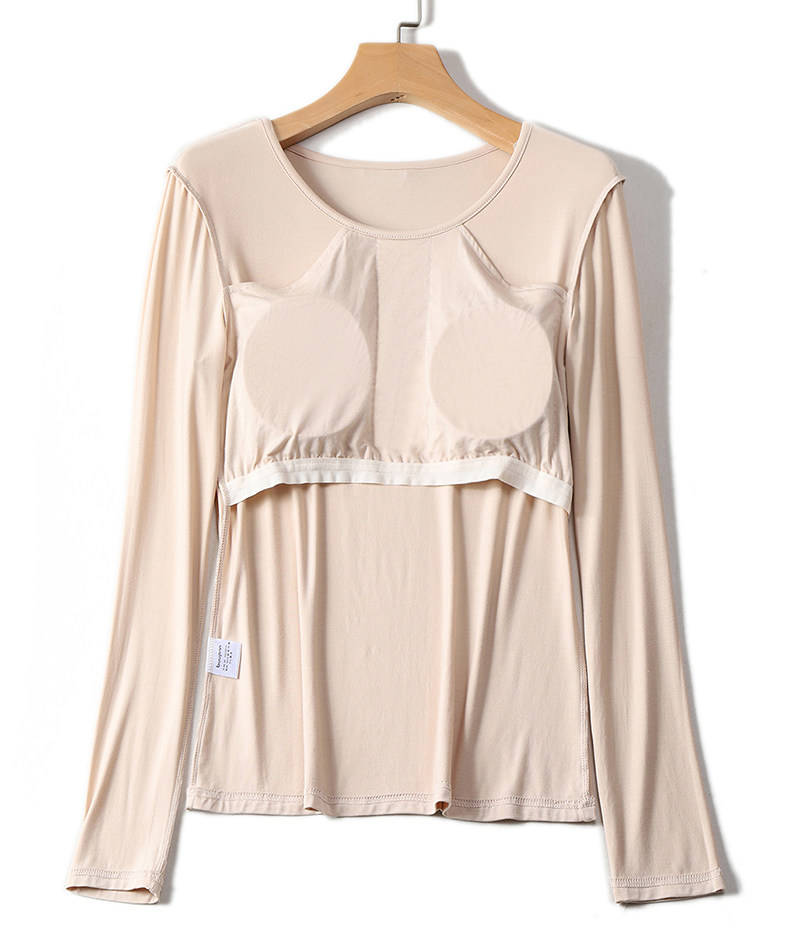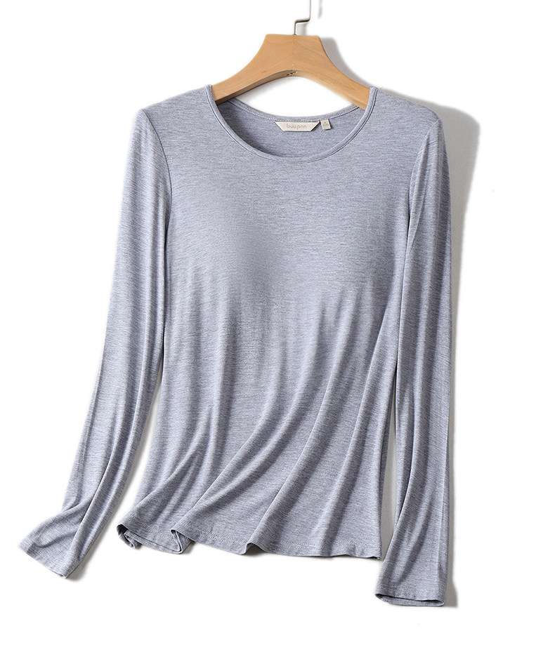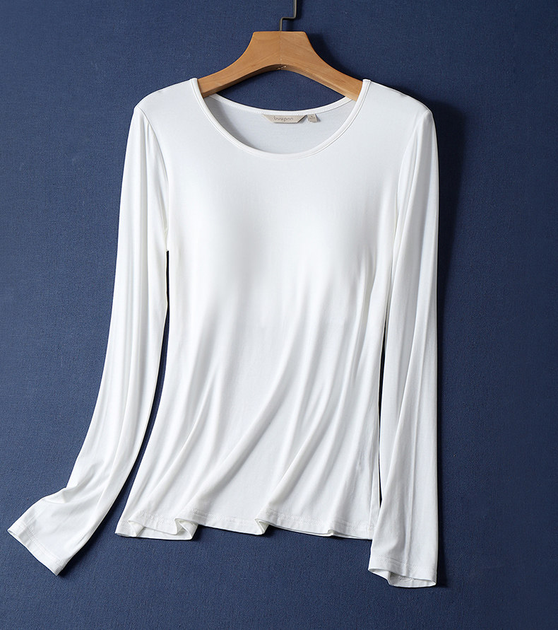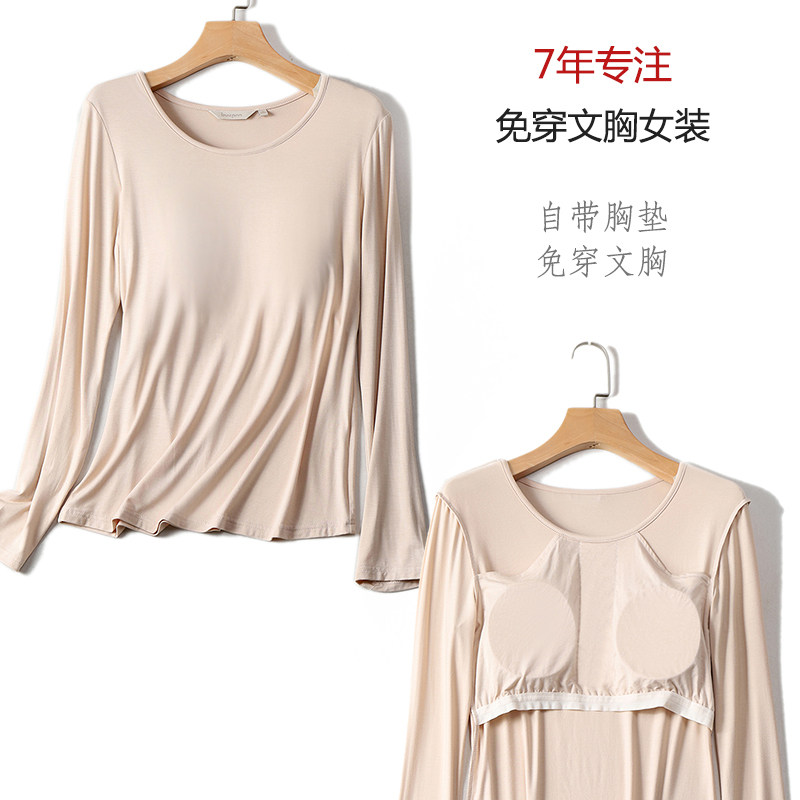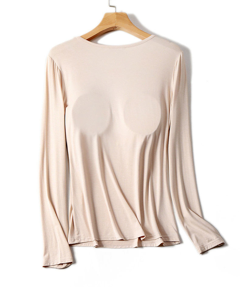 Базовый приятный телу лонгслив с круглым воротником, демисезонный топ с чашечками, бюстгалтер, футболка, большой размер