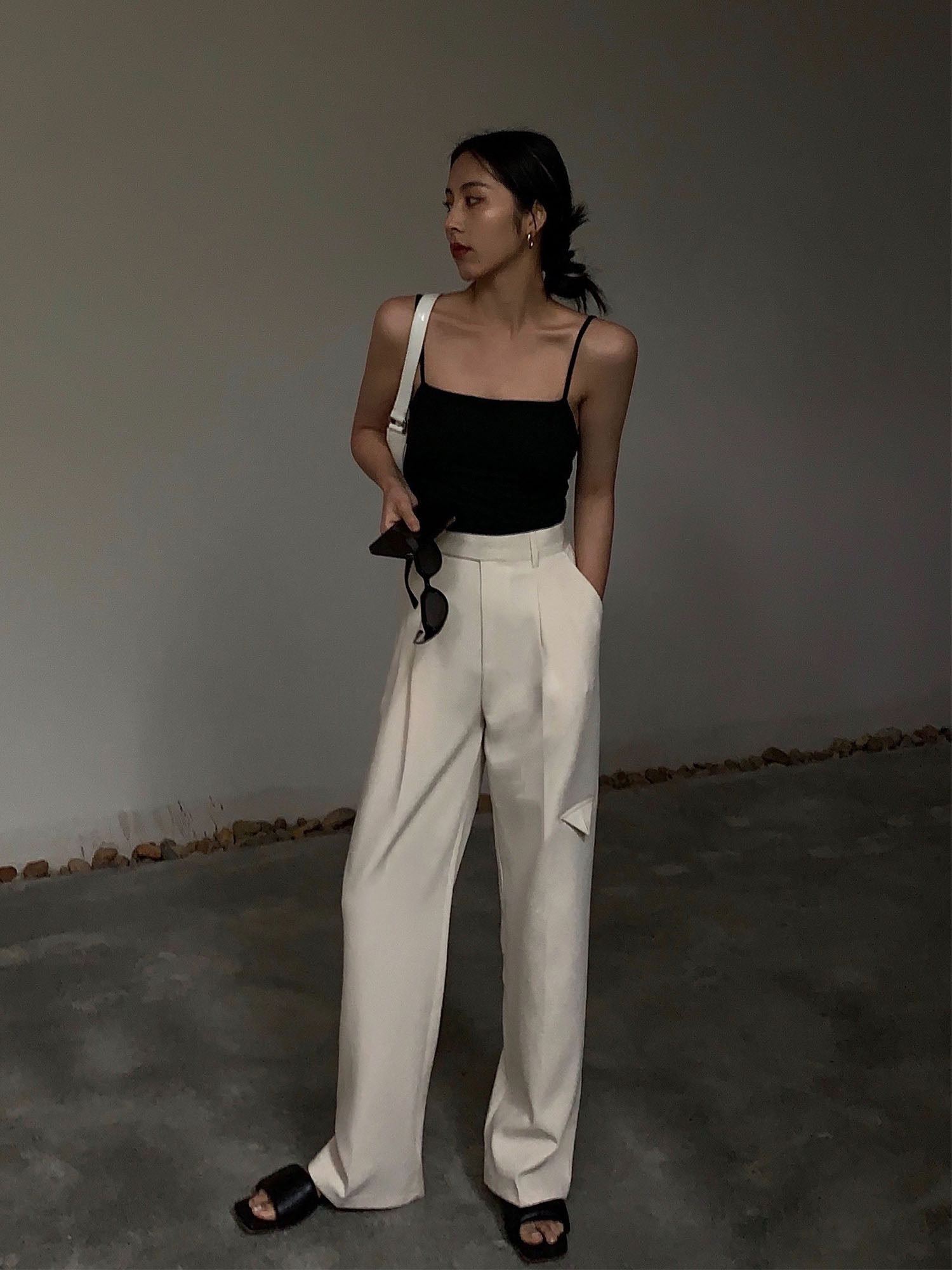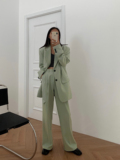 Абрикосовые штаны, летний костюм, высокая талия, свободный прямой крой