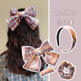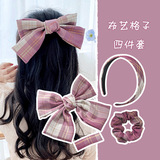 Заколка для волос с бантиком, униформа, ободок, аксессуар для волос, ткань, шпильки для волос, комплект, 4 предмета