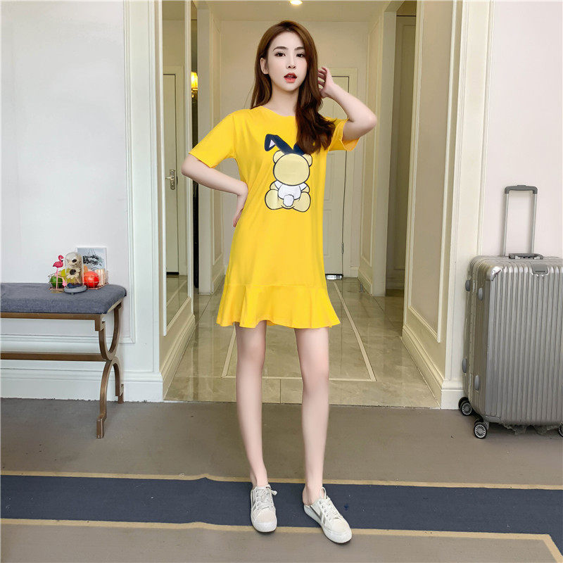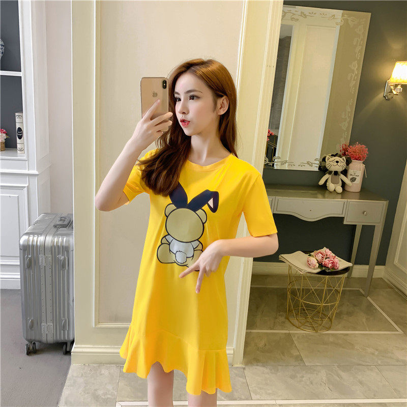 Платье, длинная юбка, длинное платье-футболка, пижама, длина миди, короткий рукав, коллекция 2022, оверсайз, с акцентом на бедрах