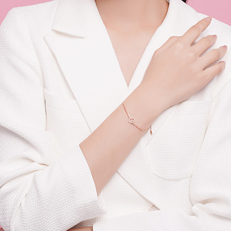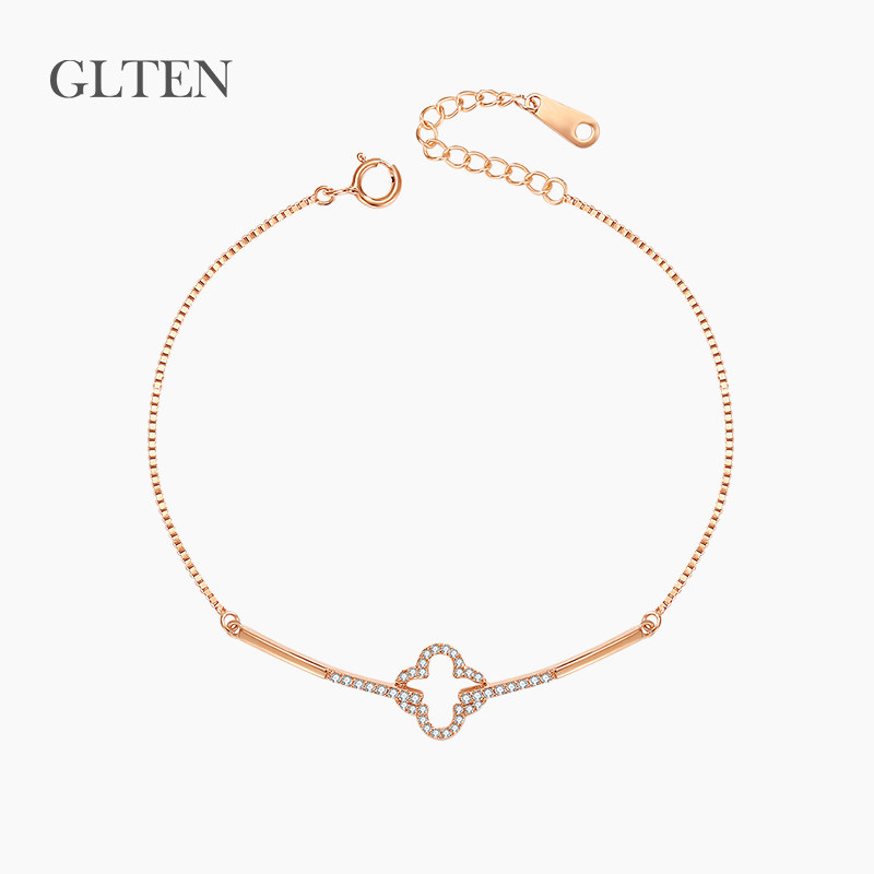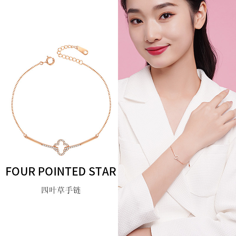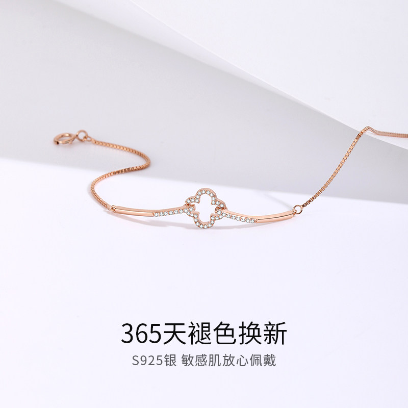 Серебряный браслет, брендовое небольшое дизайнерское ювелирное украшение, четырехлистный клевер, серебро 925 пробы, изысканный стиль, простой и элегантный дизайн, легкий роскошный стиль