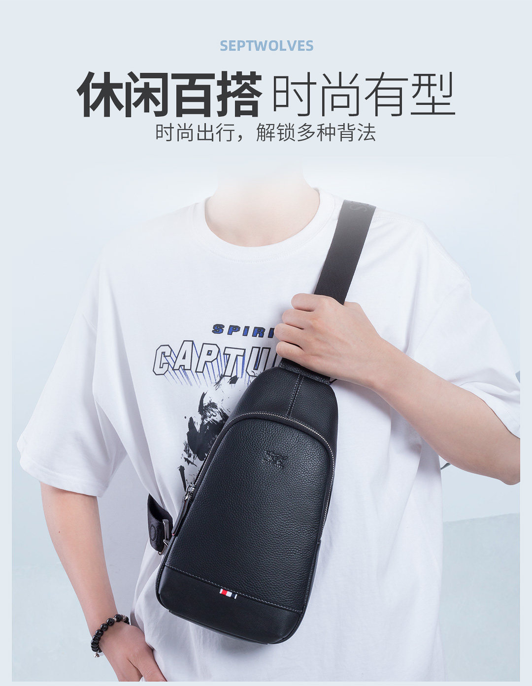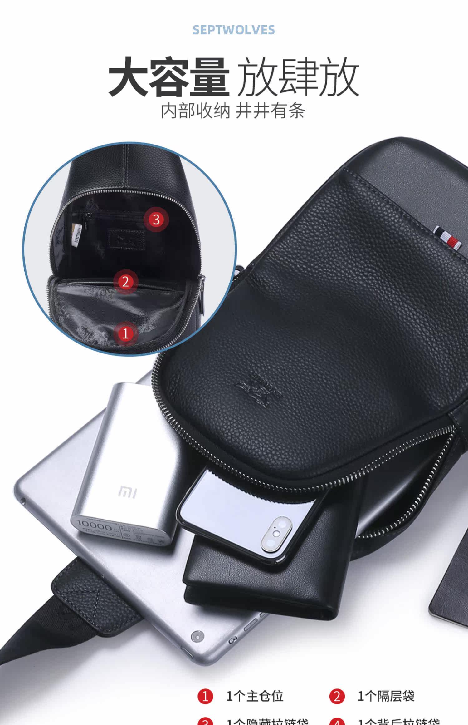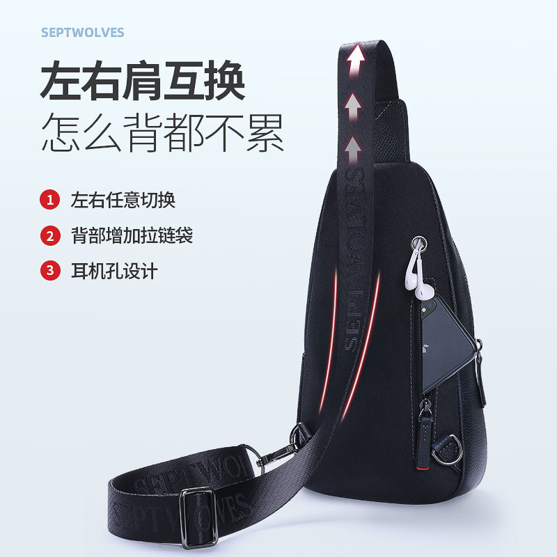 Septwolves, мужская нагрудная сумка, вместительная и большая сумка через плечо, сумка на одно плечо для отдыха, из натуральной кожи