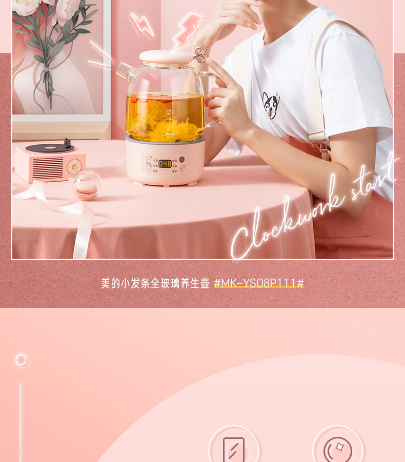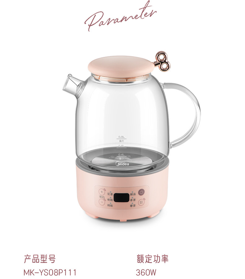 Midea Health Pot Office Небольшой мини -домашний многофункциональный вареный чайный стекло из вареного чайника P110