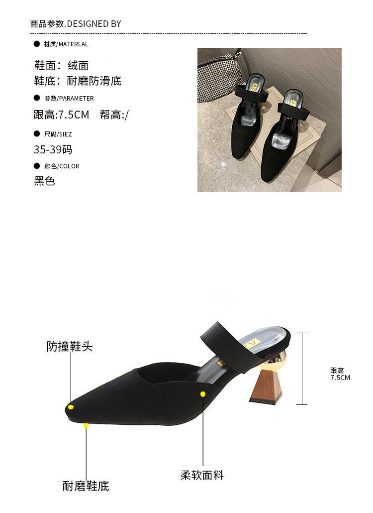 Слайдеры, тапочки, летняя модная высокая универсальная обувь с заостренным носом, популярно в интернете, сезон 2021