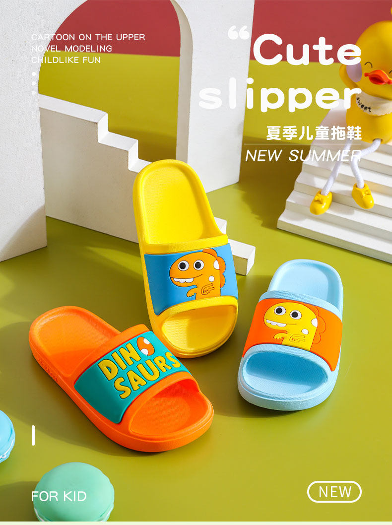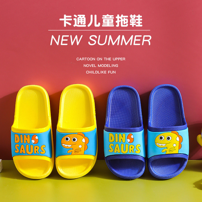 Детские тапочки для мальчиков, нескользящий мультяшный детский динозавр, мягкая подошва