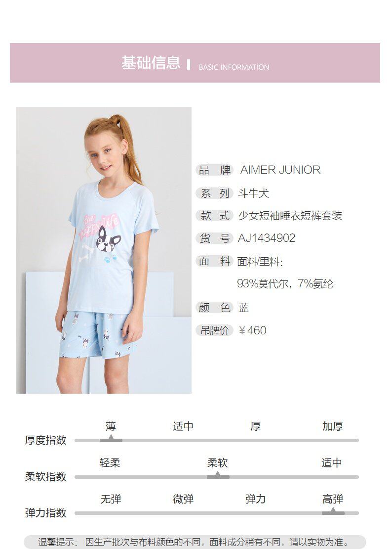 IDO подростка пижамы девочка -шорт -шорт -шорты с бычьей борьбой с пижамой пижама, установленная AJ1434902