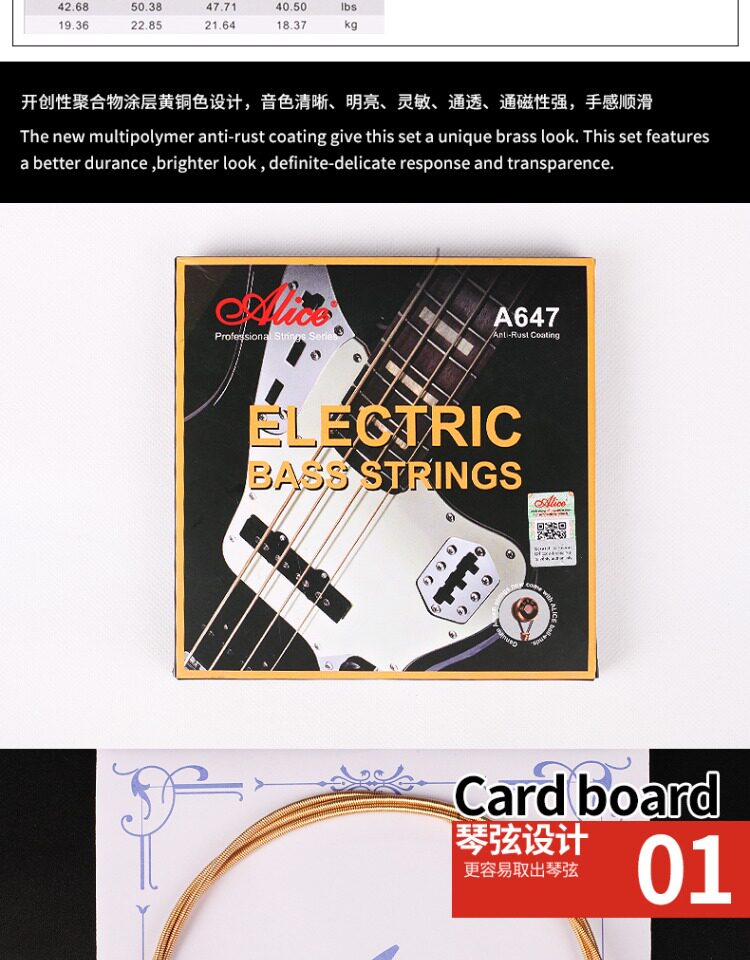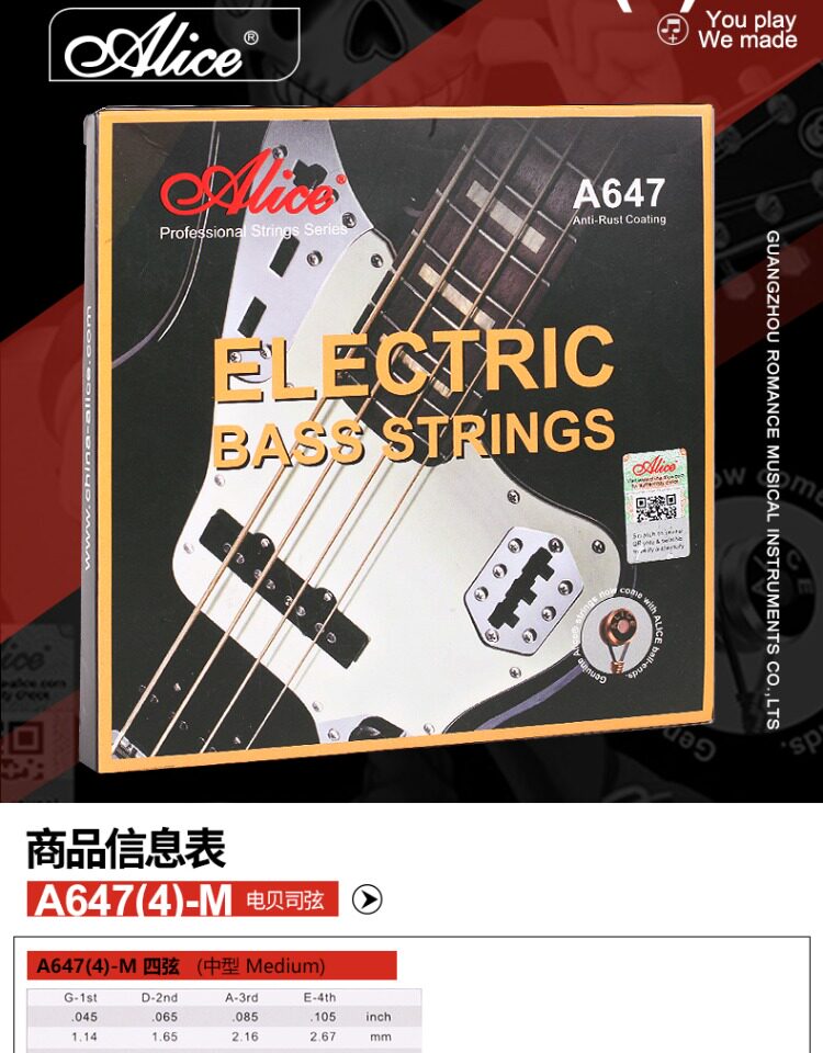 Алиса A647 Electric Bazi String 045-105 Bass Besian String String Case Case Case Rust Anti-Free Dropping