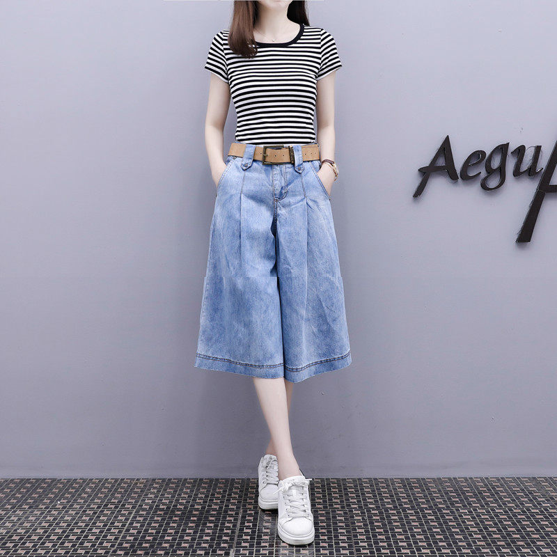 Джинсовый летний приталенный комплект, приталенная юбка для отдыха, штаны, европейский стиль