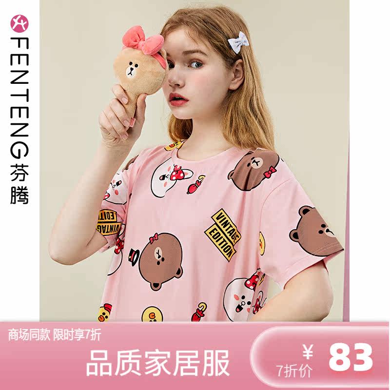 Пижама, хлопковая милая юбка, мультяшное платье для школьников и студентов, короткий рукав