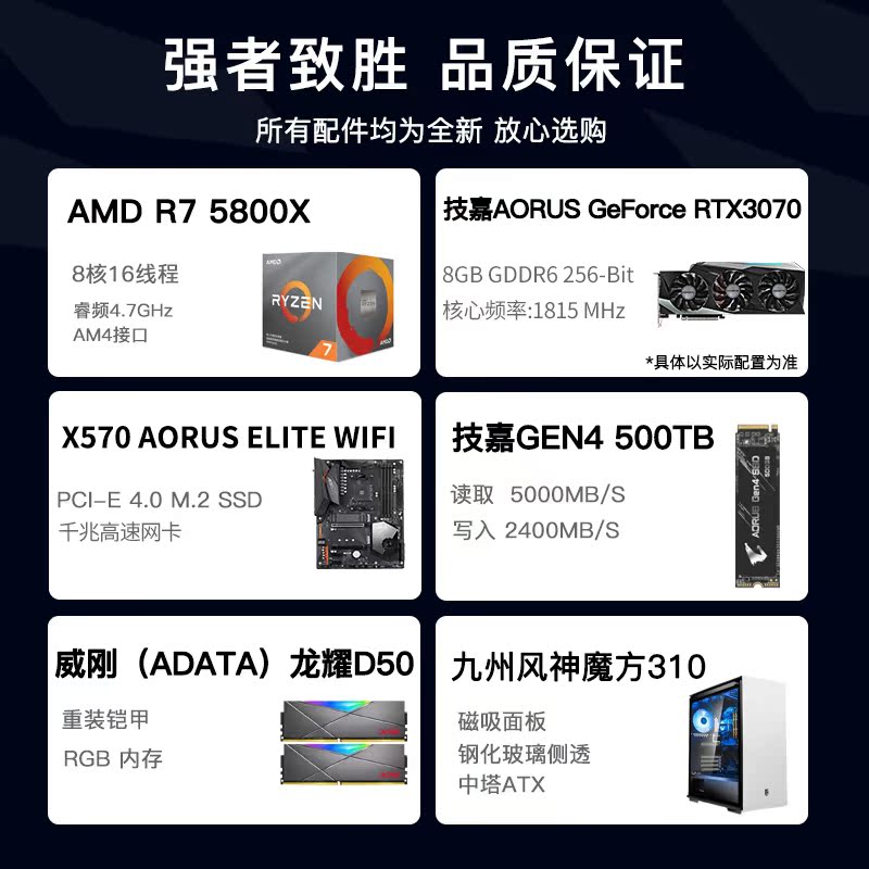 Gigabyte Computer Host AMD R7 5800X/3070/6800XT/High -Match Desktop Полный набор видео -видео -карт для куриной игры Water Hom