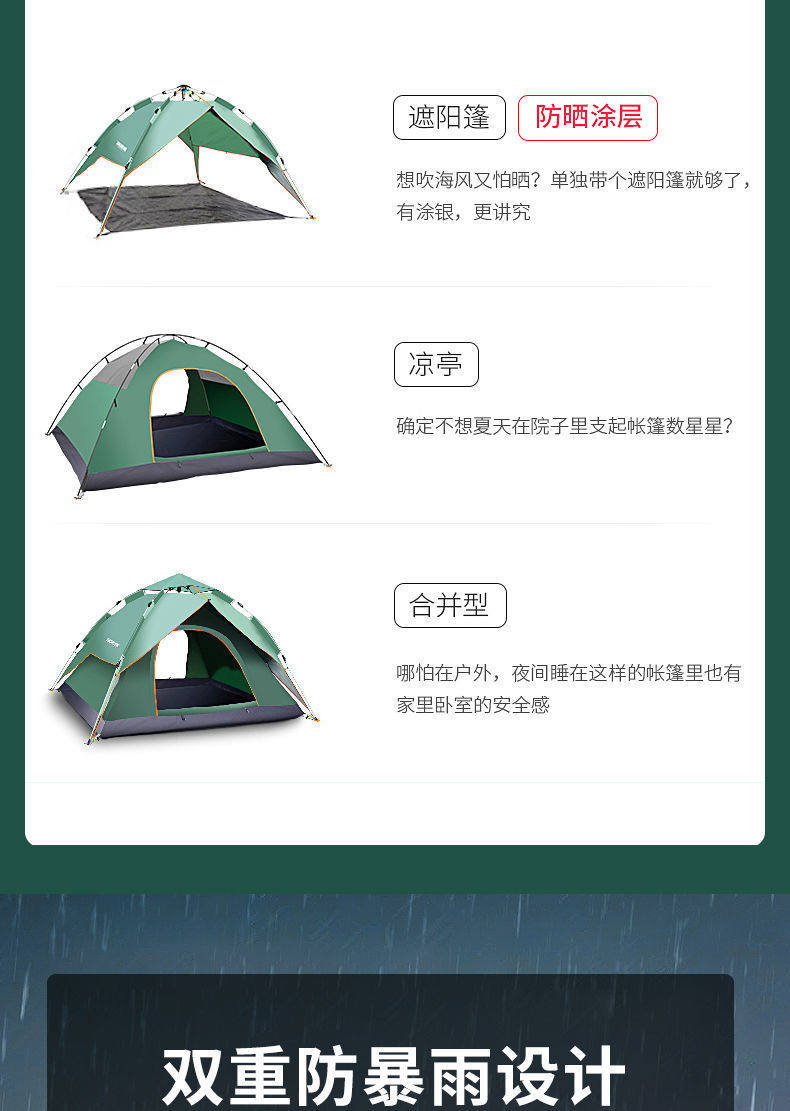 Гидролат для кемпинга, дорожная автоматическая палатка, складное портативное взрывобезопасное снаряжение для двоих, полностью автоматический, увеличенная толщина