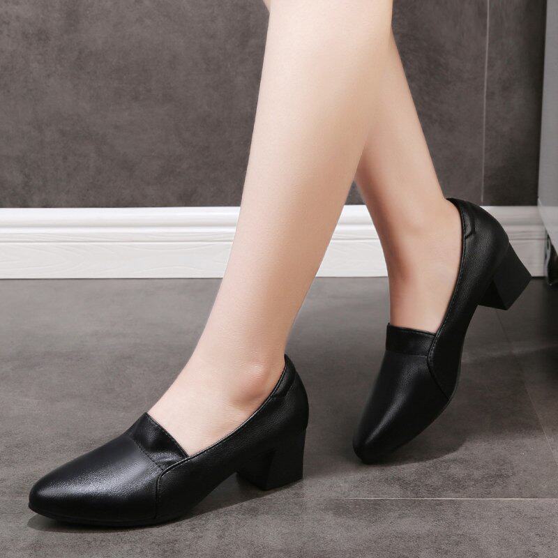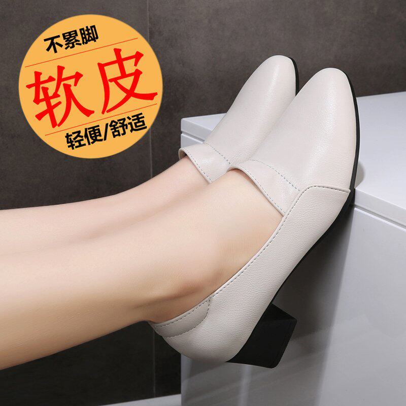 Рабочая обувь с мягкой поверхностью и мягкой подошвой, женские весенние новые туфли 2023, удобная женская обувь на толстом каблуке, профессиональная обувь на среднем каблуке, осень
