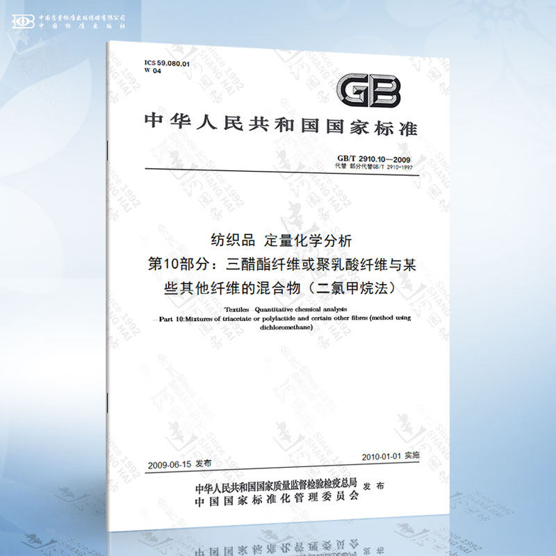 GB/T 2910.10-2009 Количественный химический анализ текстиля, часть 10: смешанный с тремя уксусными волокнами или полиальными кислотными волокнами и некоторыми другими волокнами ...