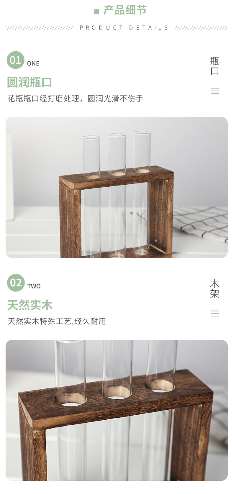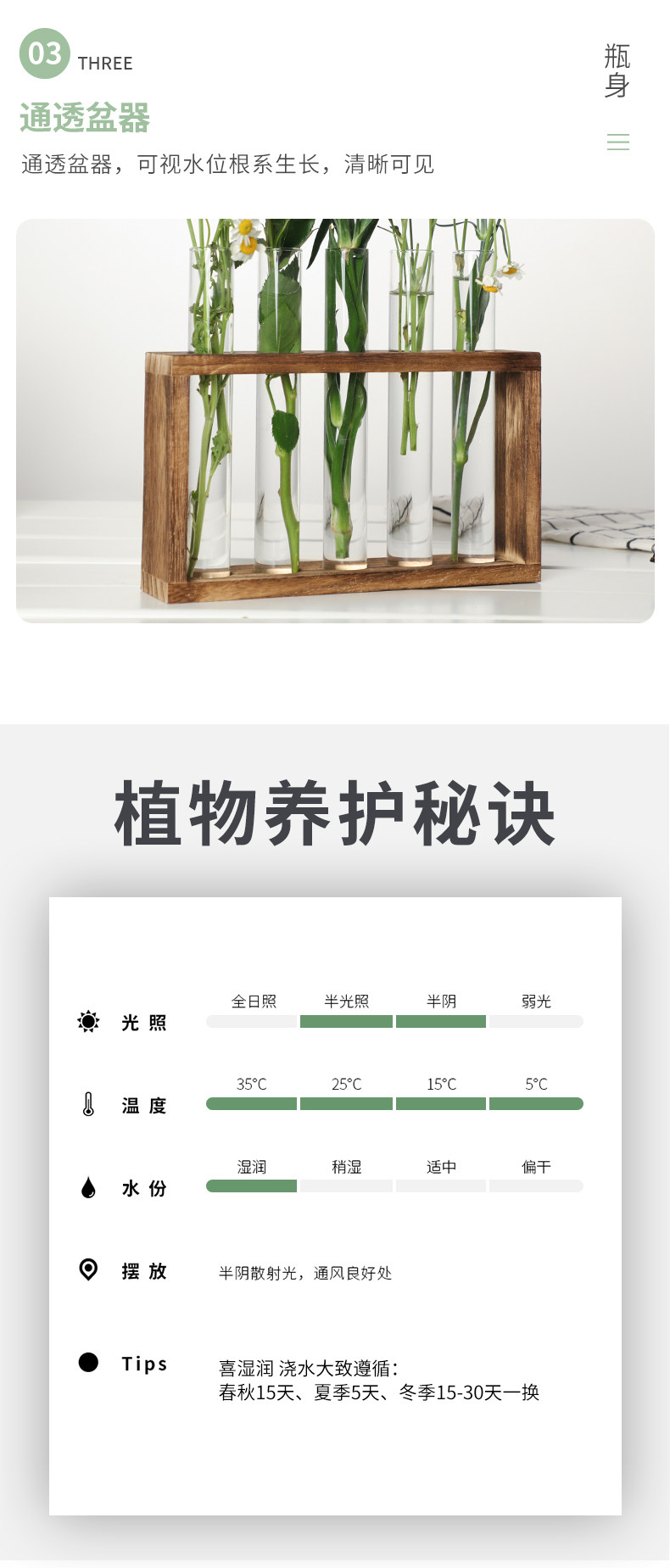 Гидропоновая зеленая стеклянная тестовая труба Ваза Гидрамал Цветочный обменуирующий растение минималистское стол.