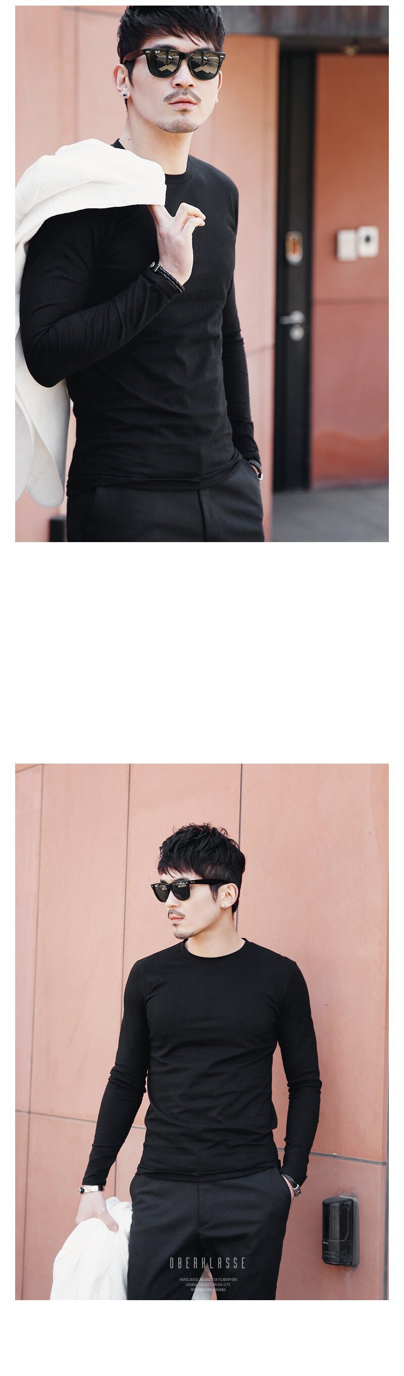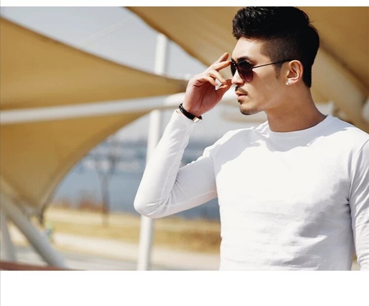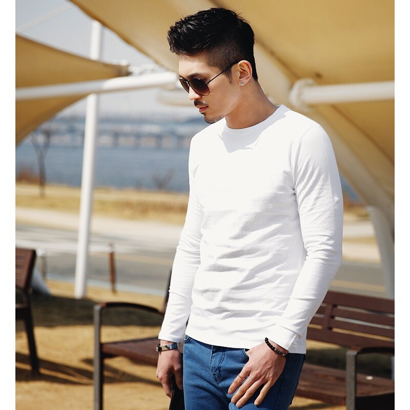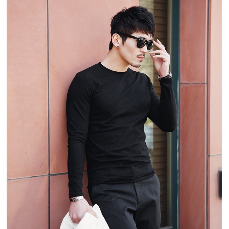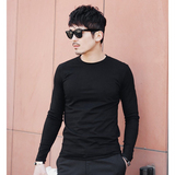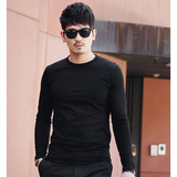 Весенняя футболка, черный хлопковый лонгслив с круглым воротником, в корейском стиле, облегающий крой