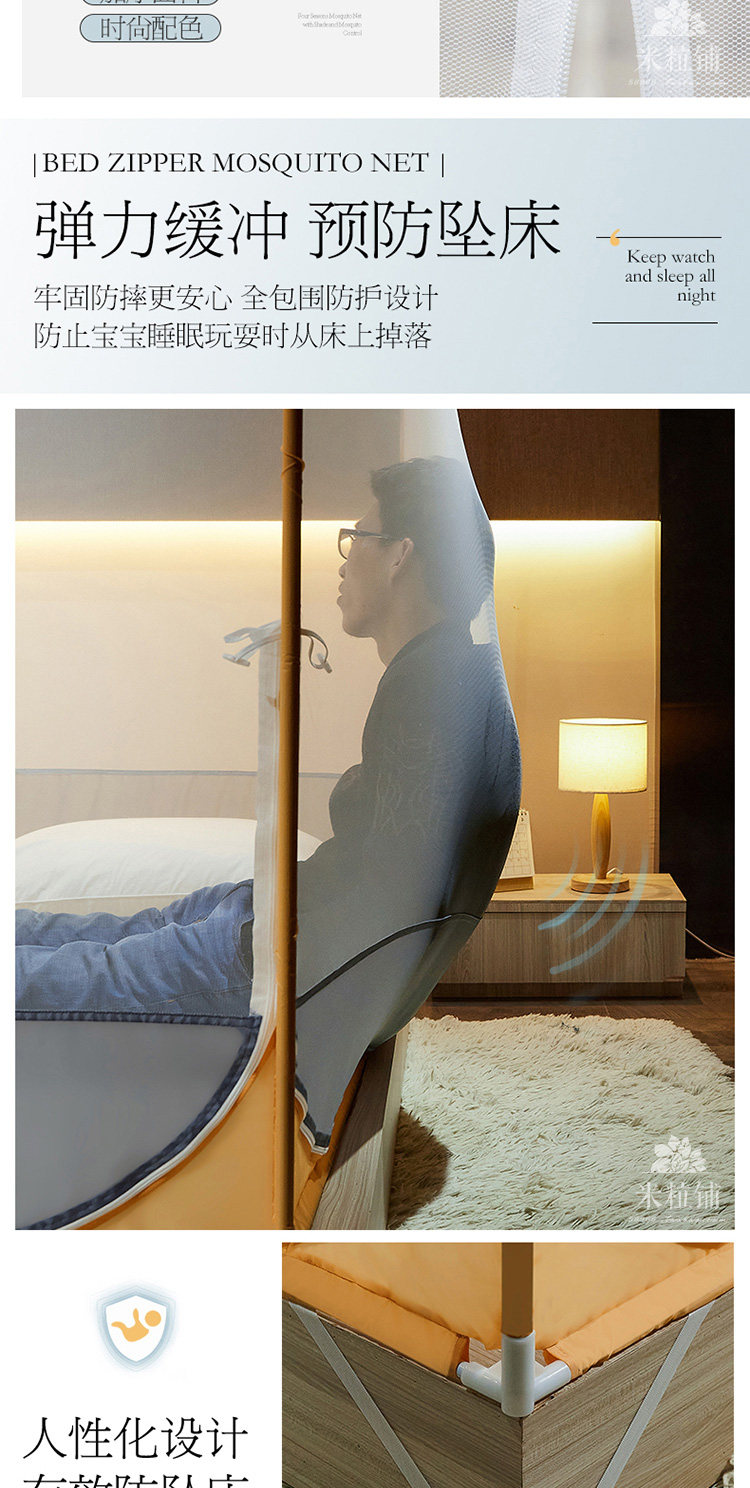 Летняя детская москитная сетка, палатка с молнией, бортики, трубка, защита при падении, фиксаторы в комплекте