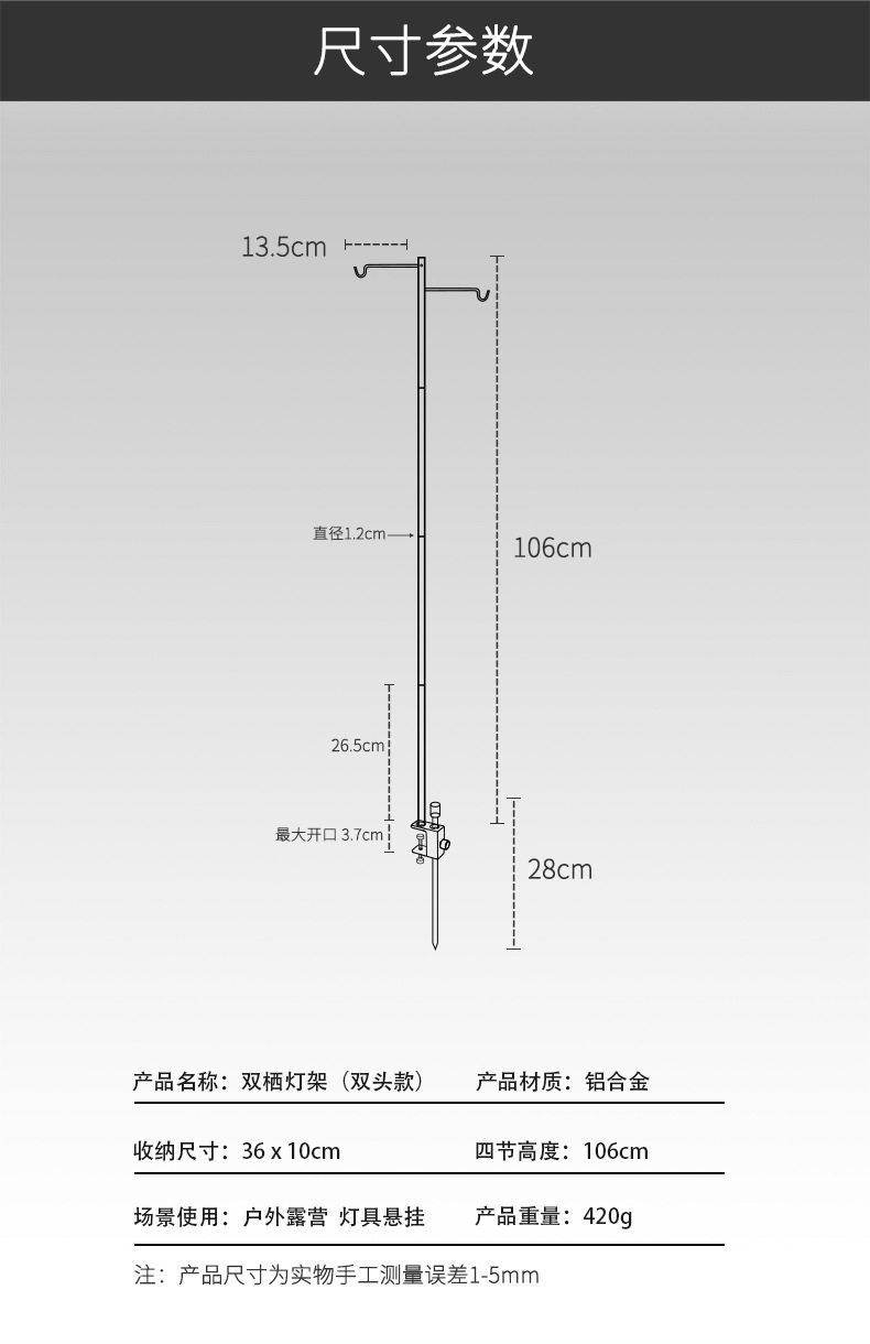 Дорожная металлическая лампочка, портативный фонарный столб для кемпинга, светильник