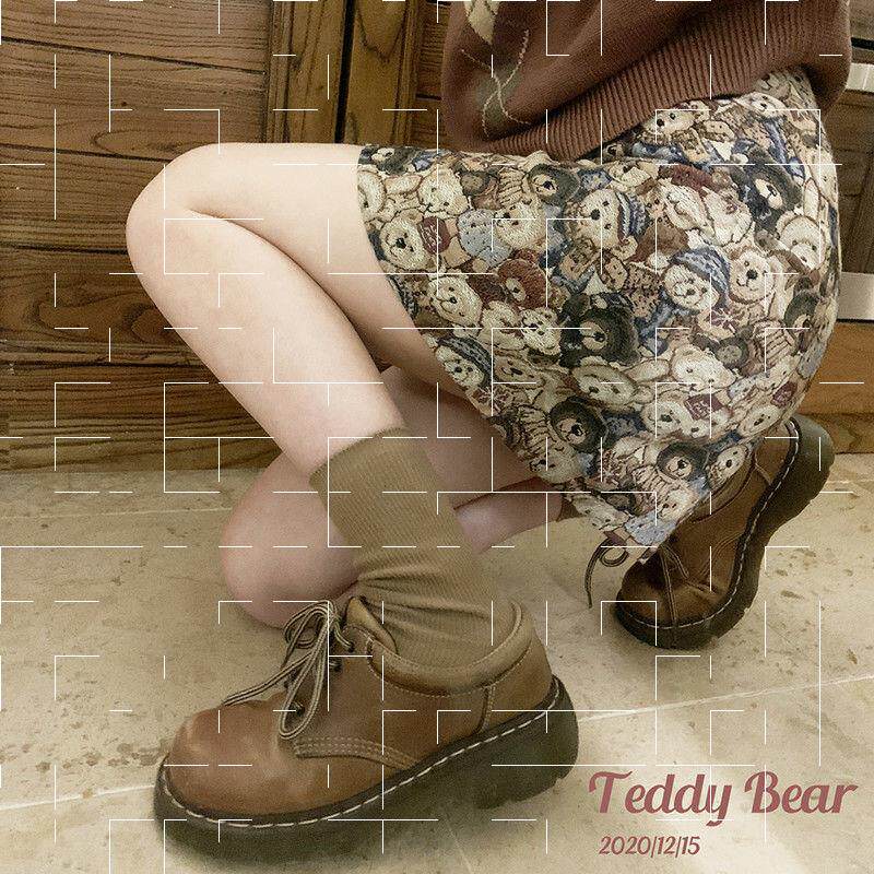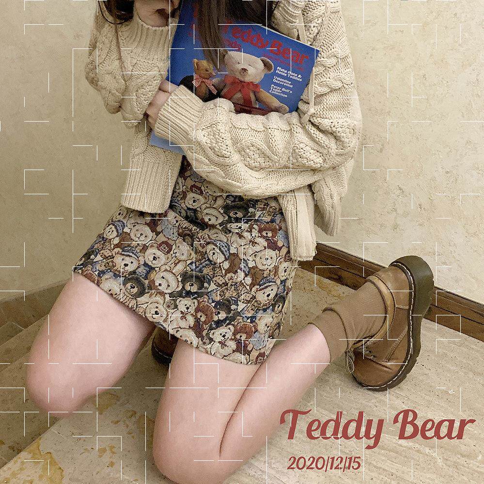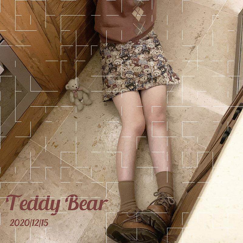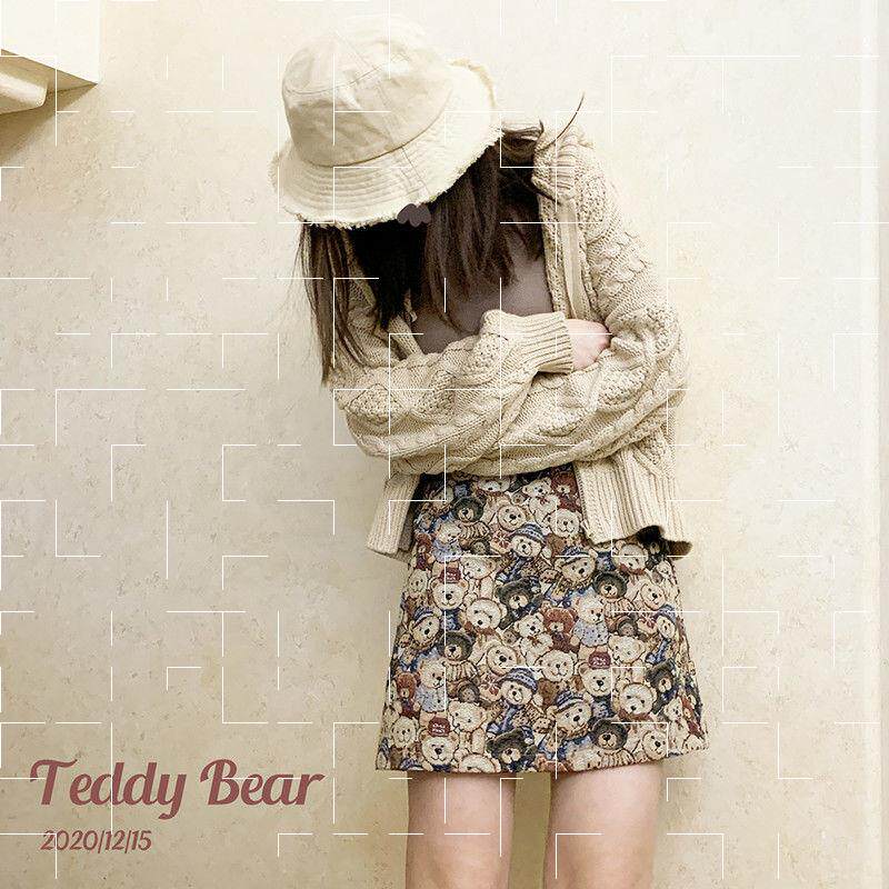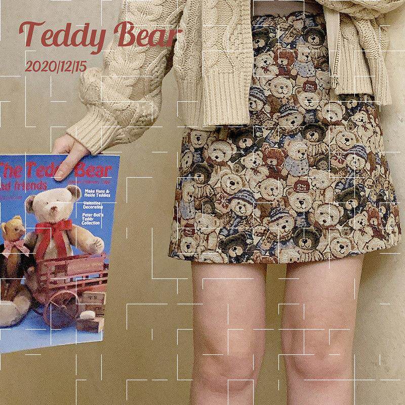 Ретро милая юбка с молнией, мини-юбка, с медвежатами, высокая талия