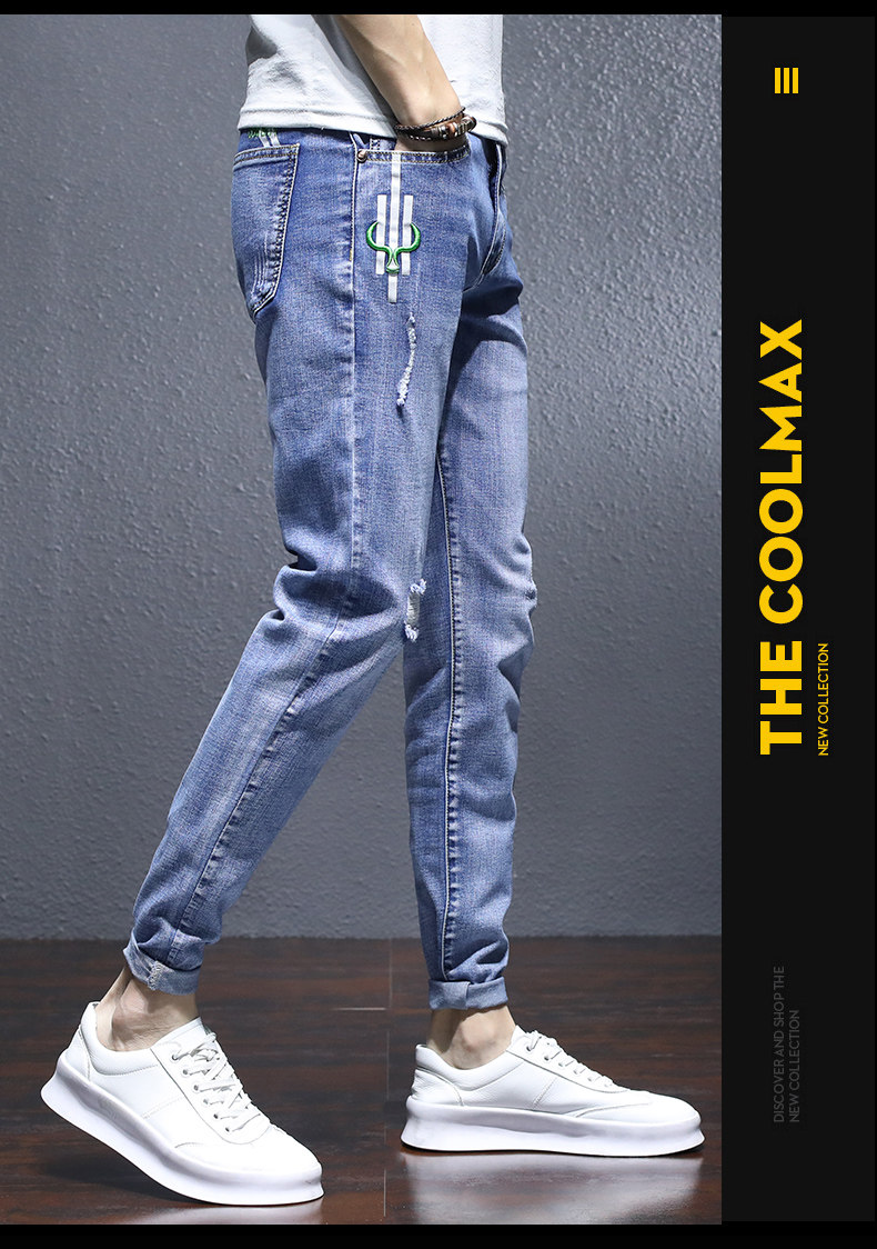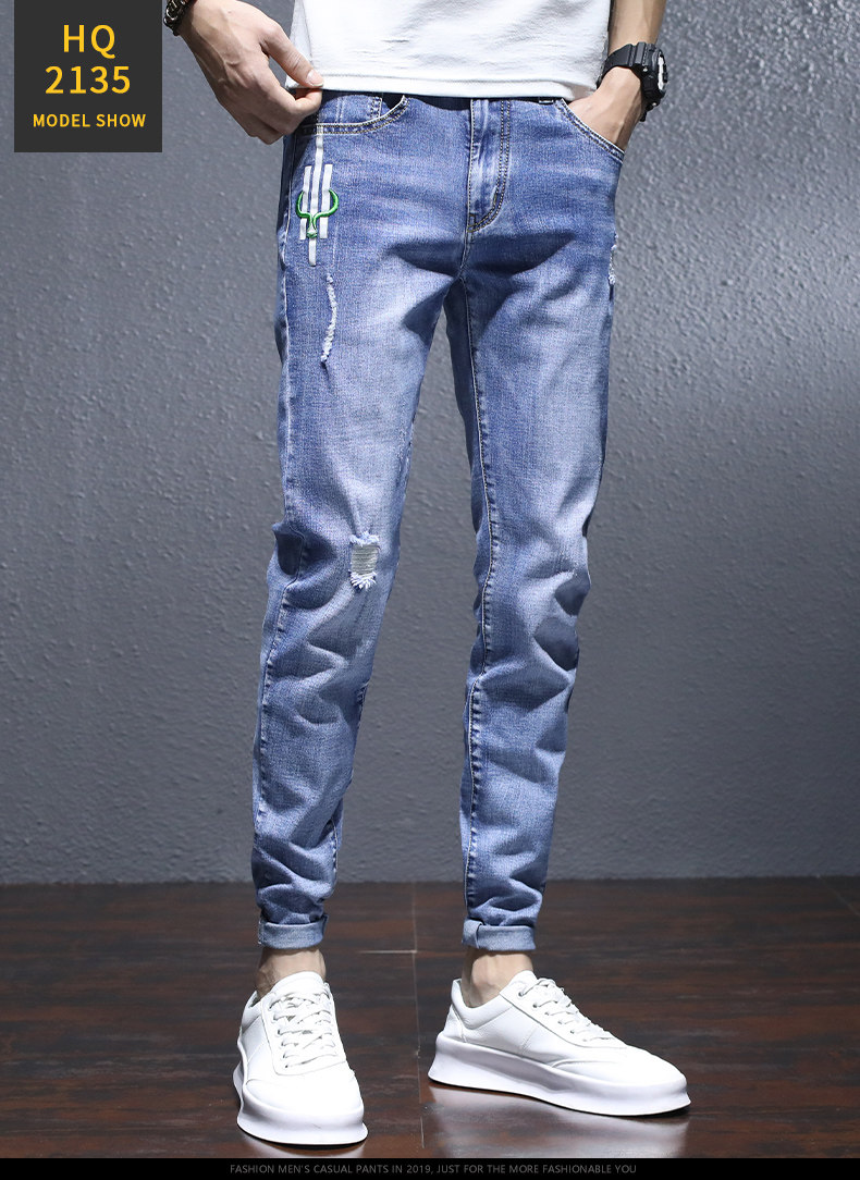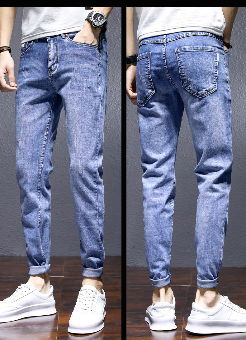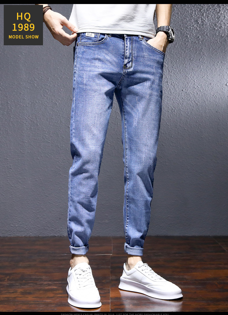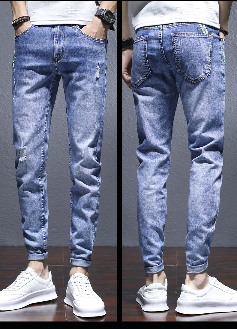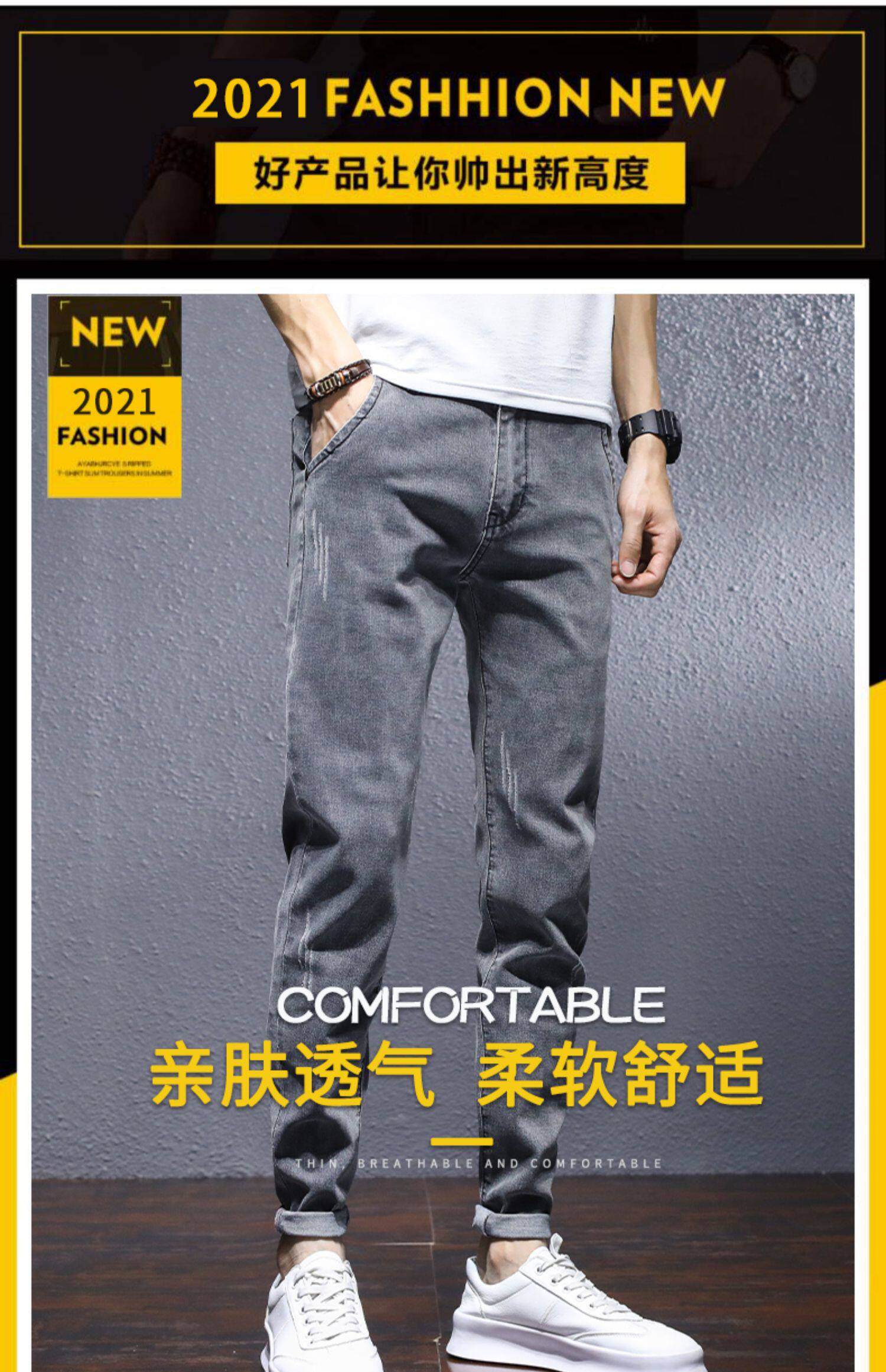 Трендовые эластичные джинсы, весенние летние штаны для отдыха, в корейском стиле, облегающий крой, 2021 года