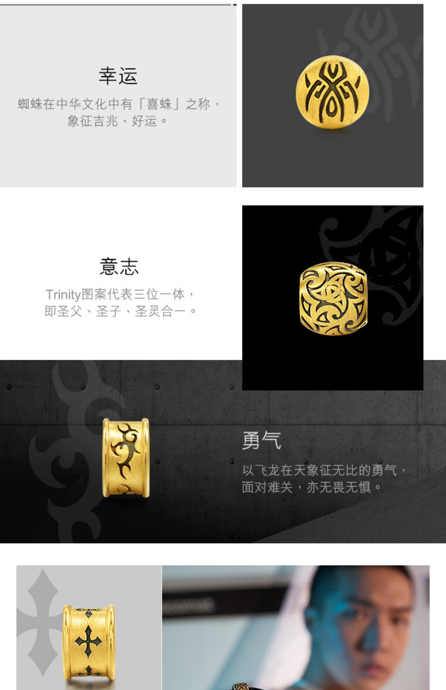 周生生 Charme XL Cool Black Gold Beads Beads Год Dragon и Beads 92303c