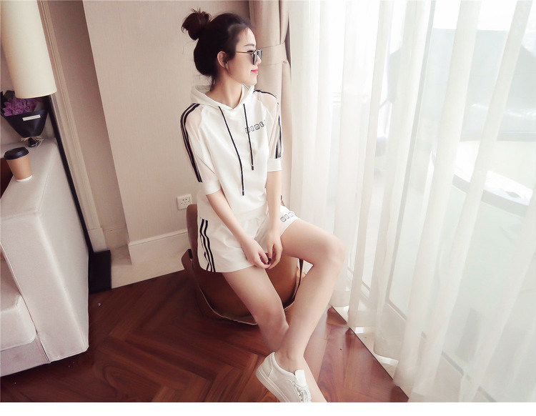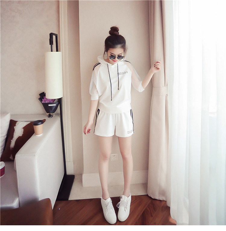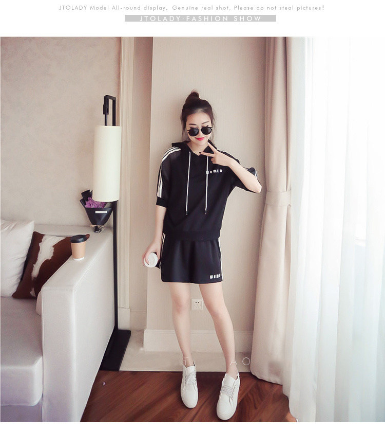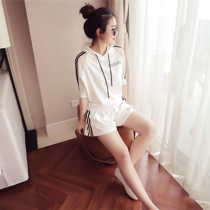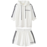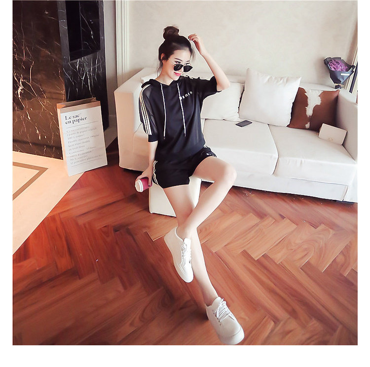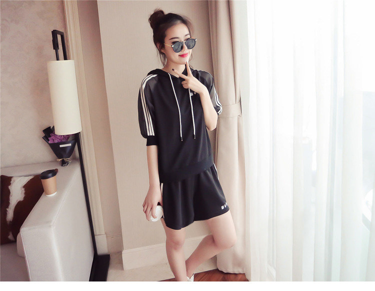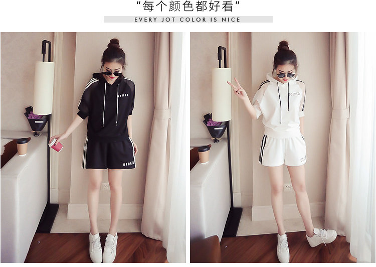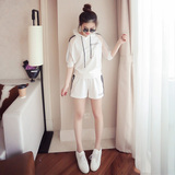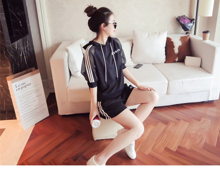Летний спортивный костюм с капюшоном, комплект, в корейском стиле, большой размер, свободный крой