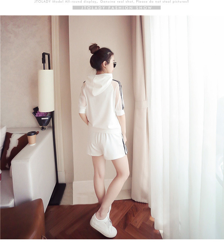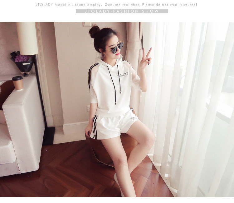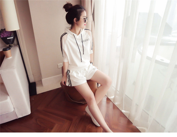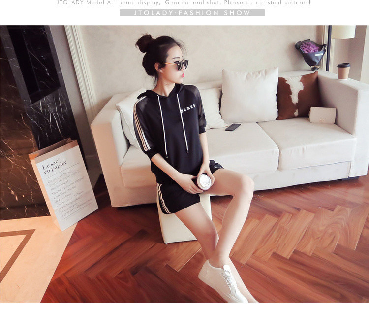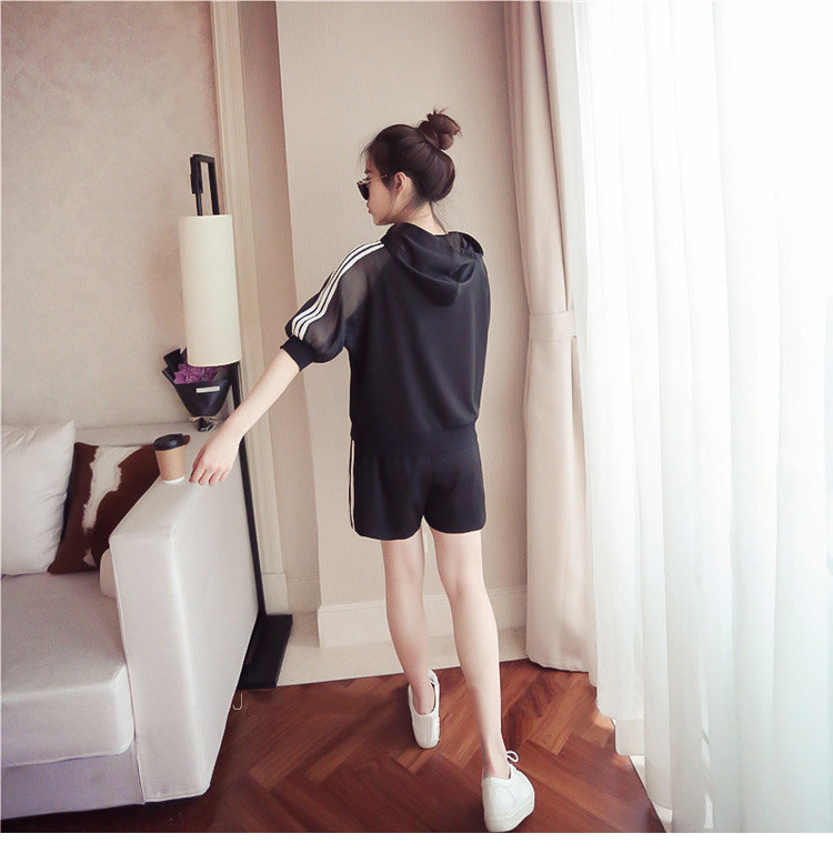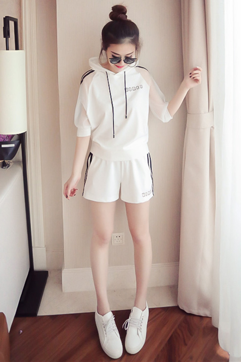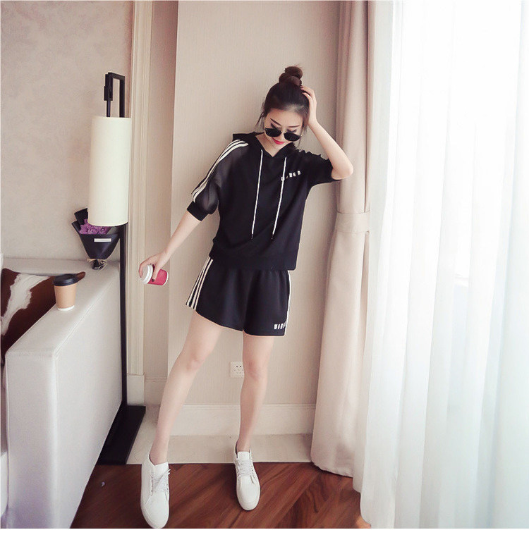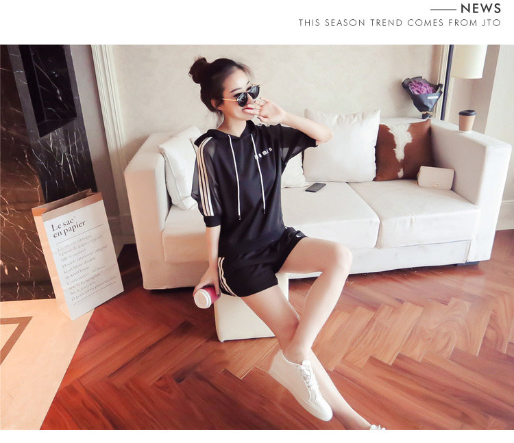 Летний спортивный костюм с капюшоном, комплект, в корейском стиле, большой размер, свободный крой