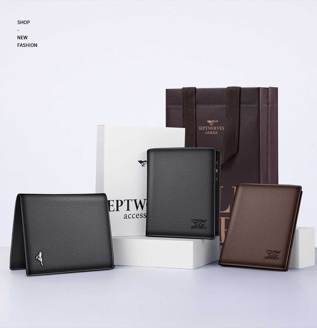 Septwolves, короткий кожаный легкий и тонкий бумажник, из натуральной кожи, подарок на день рождения