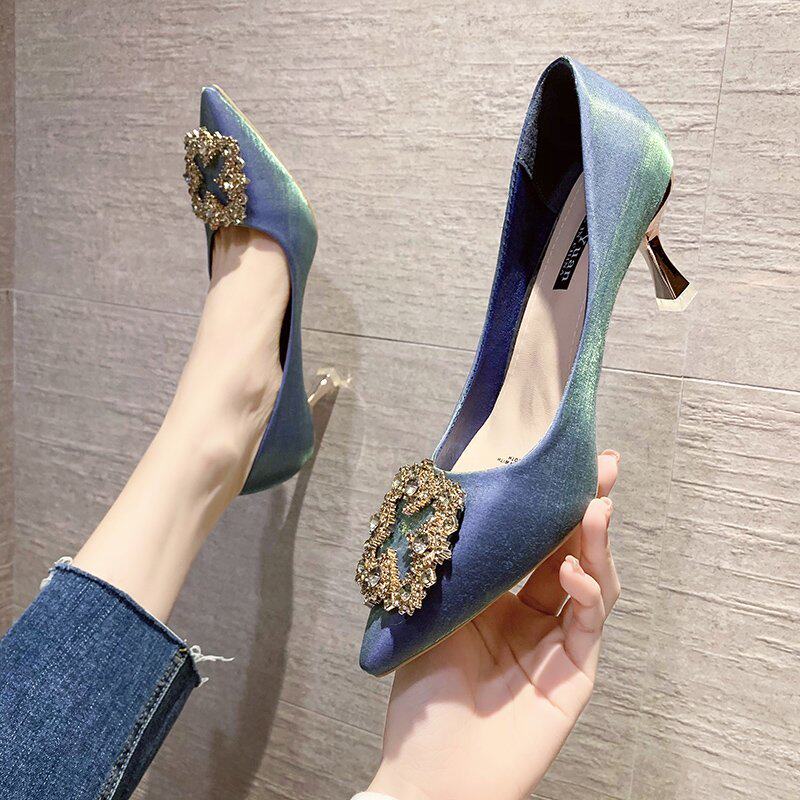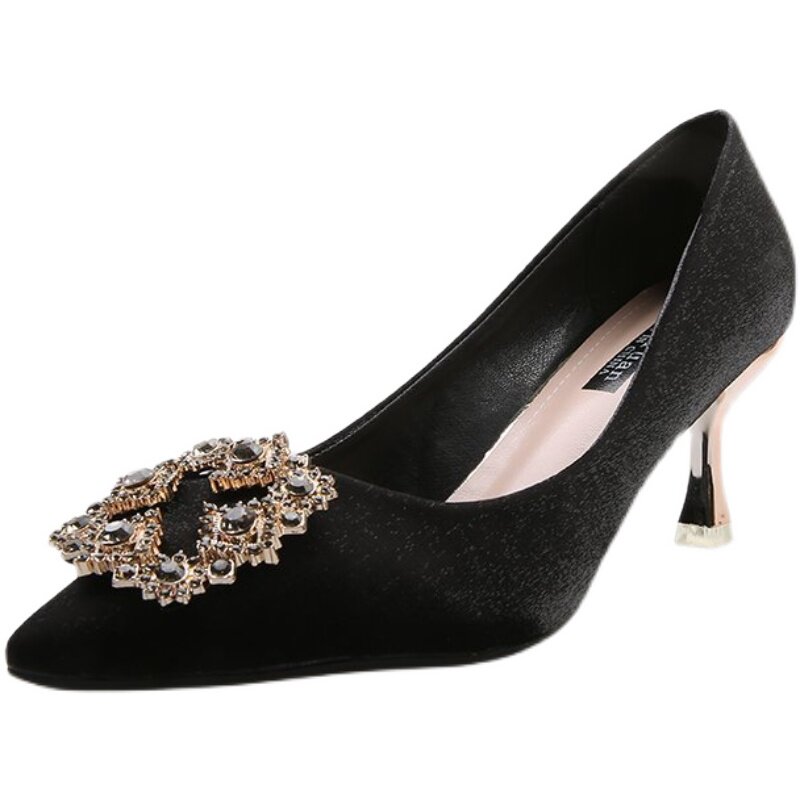 Весенние туфли на высоком каблуке, свадебные туфли, черная обувь с заостренным носом, 7см