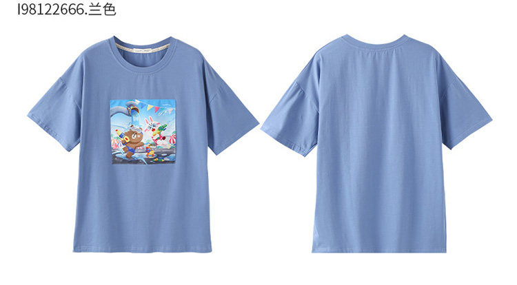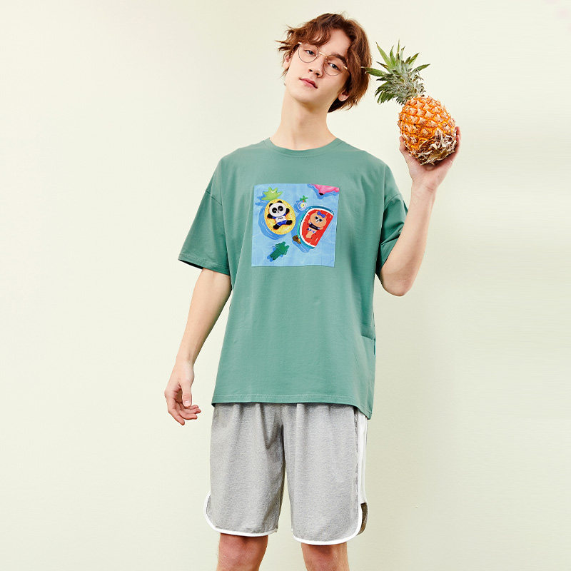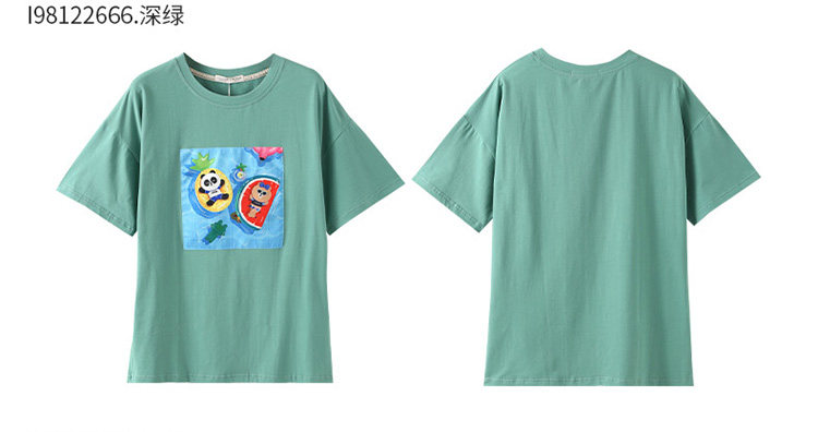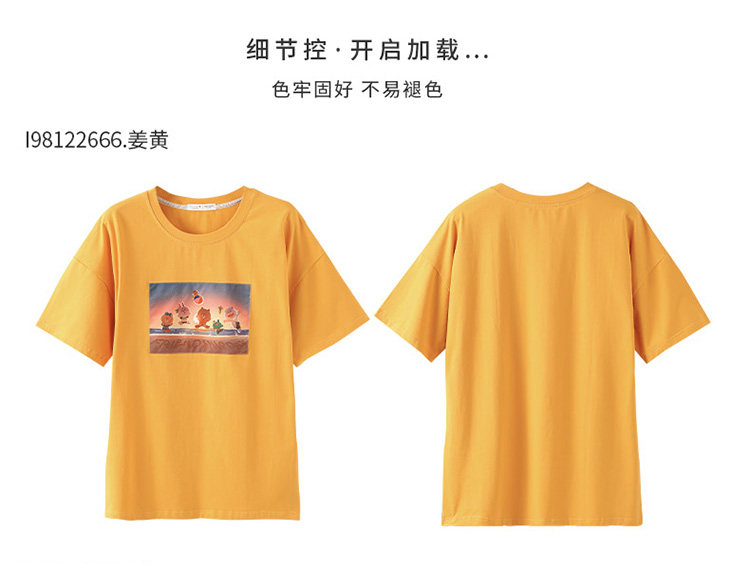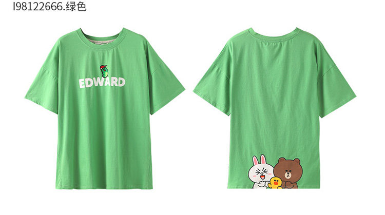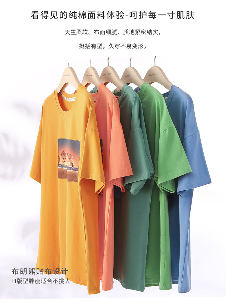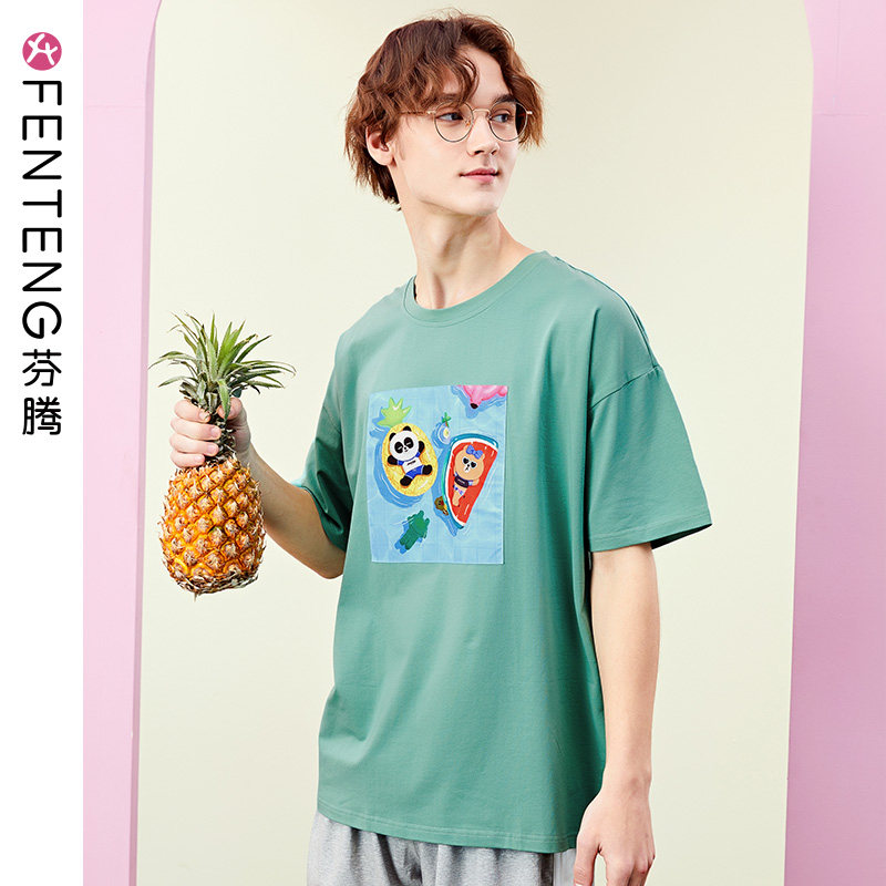 芬腾 Летняя спортивная мультяшная трендовая хлопковая футболка с коротким рукавом с круглым воротником, оверсайз