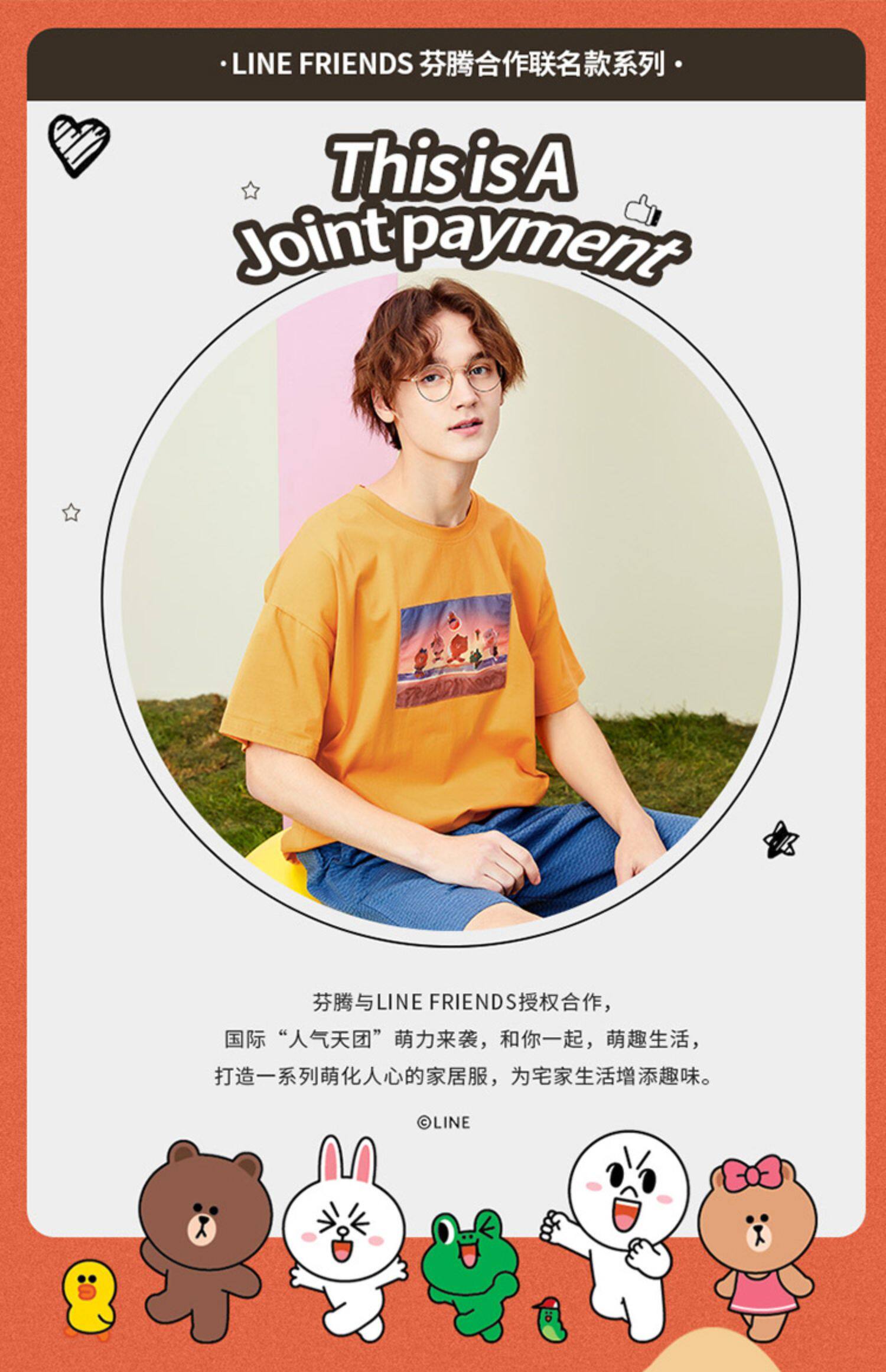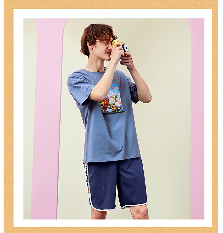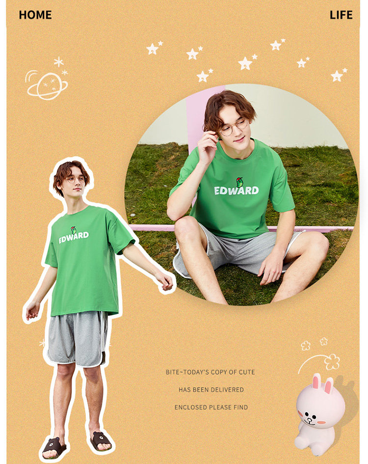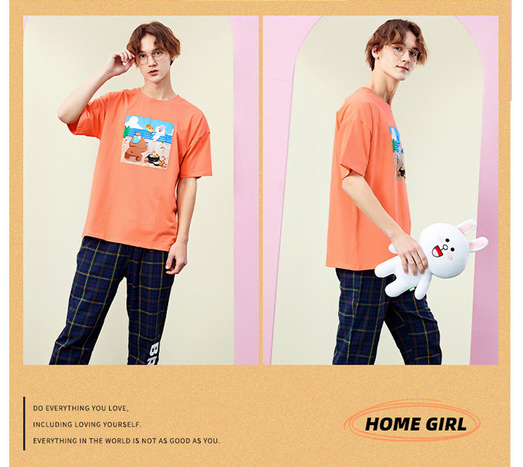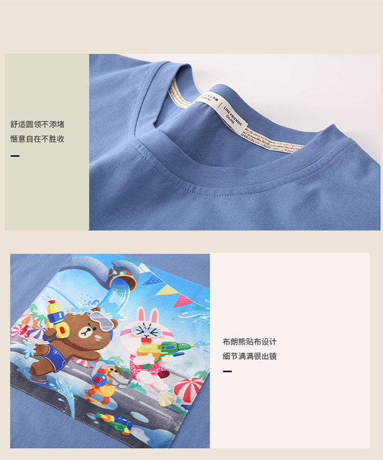 芬腾 Летняя спортивная мультяшная трендовая хлопковая футболка с коротким рукавом с круглым воротником, оверсайз