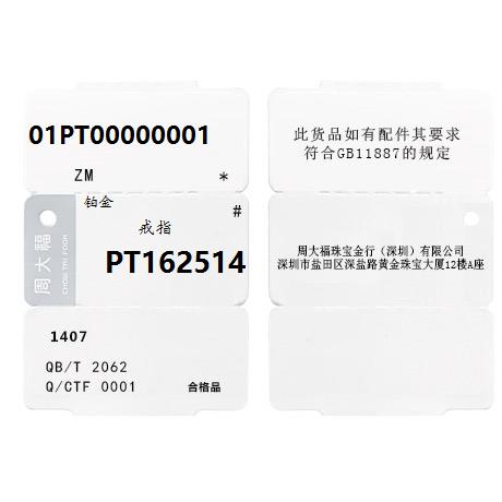 周大福 Ювелирное украшение, платиновое кольцо, платина 950 пробы, платина 162514 пробы