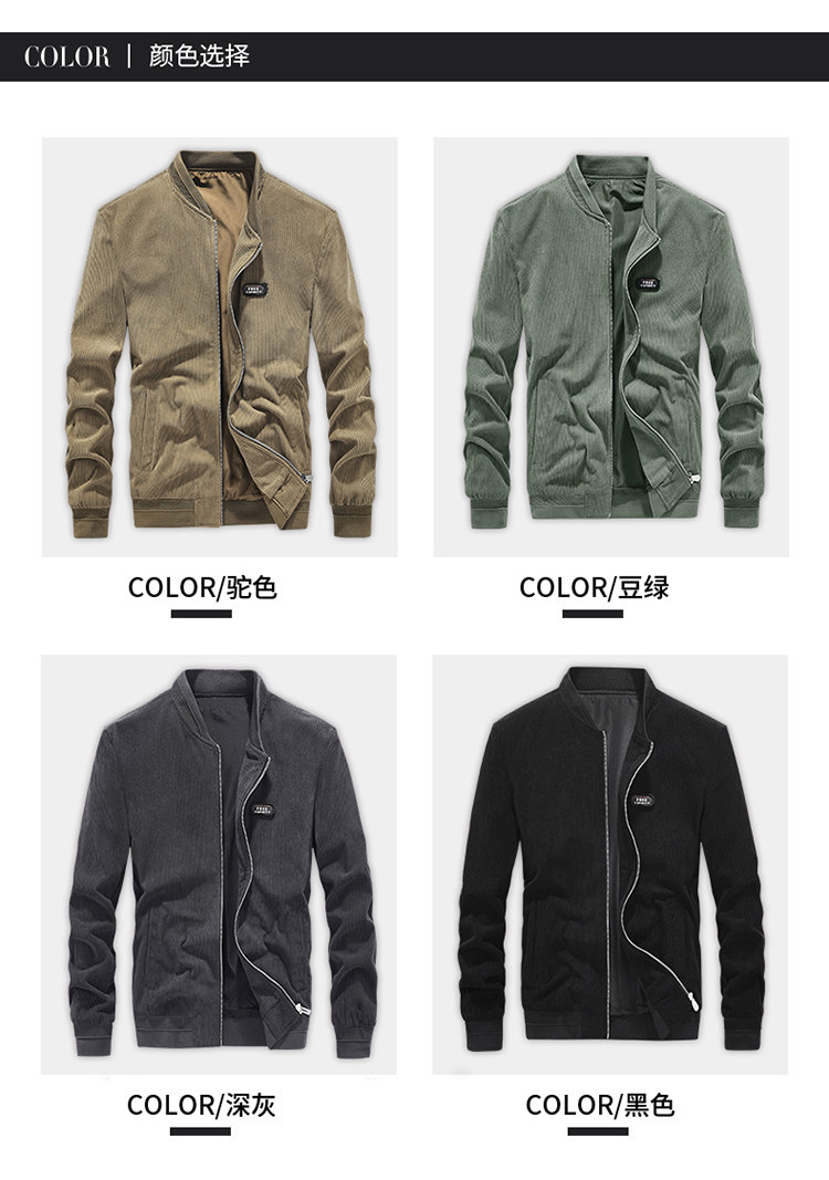 Демисезонная вельветовая однотонная хлопковая тонкая куртка для отдыха