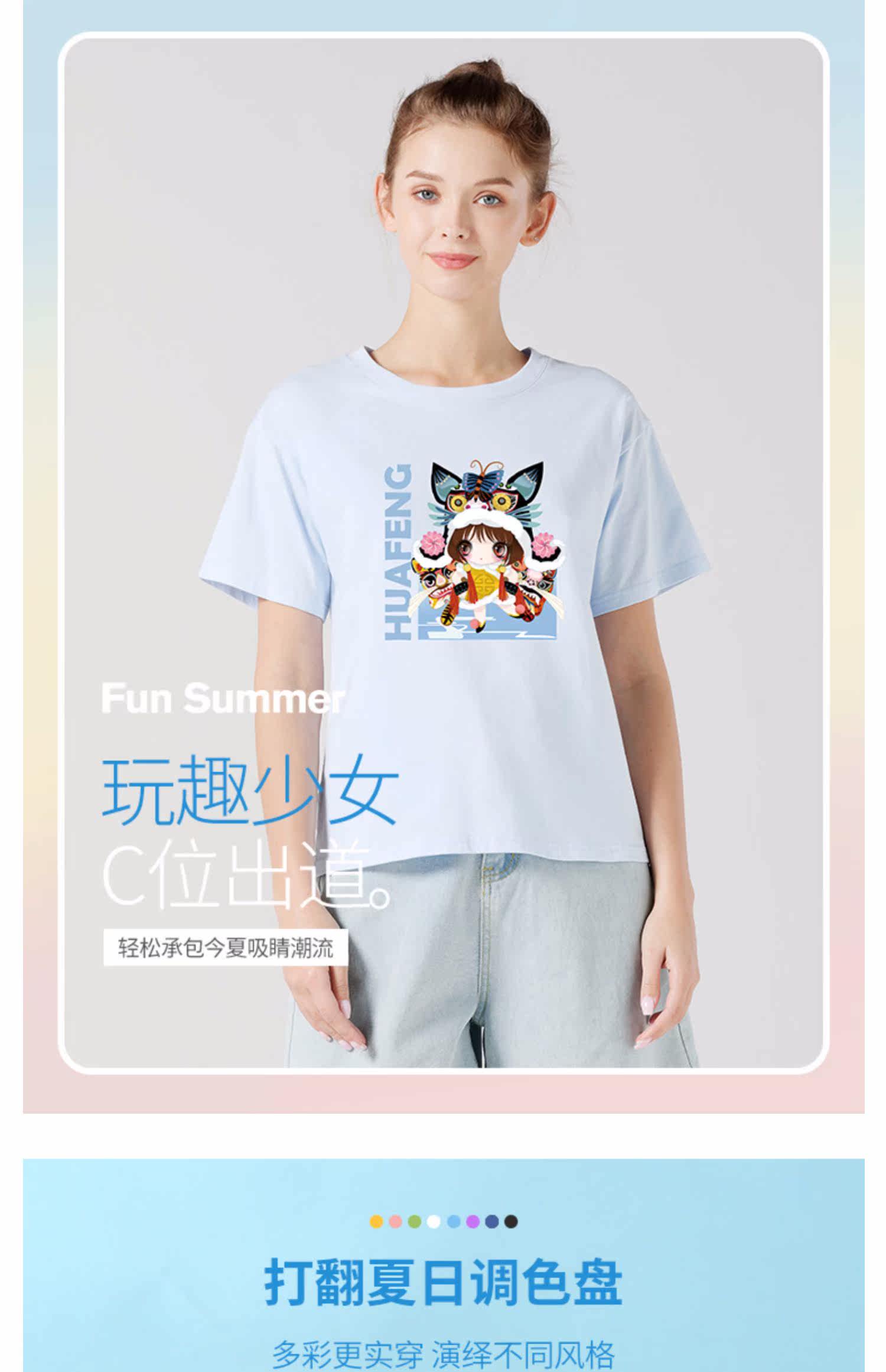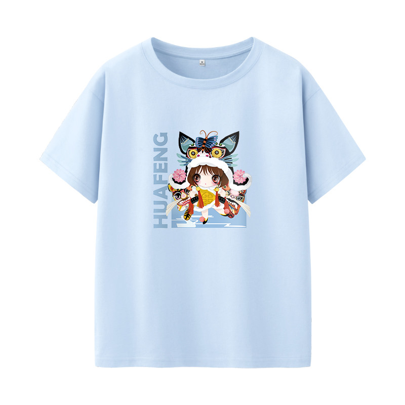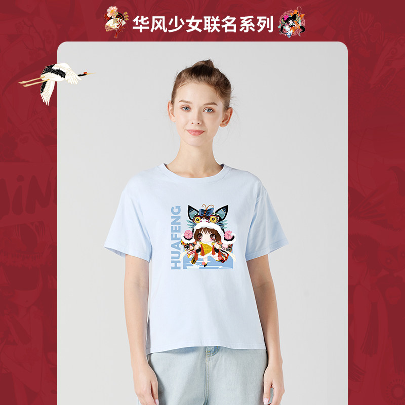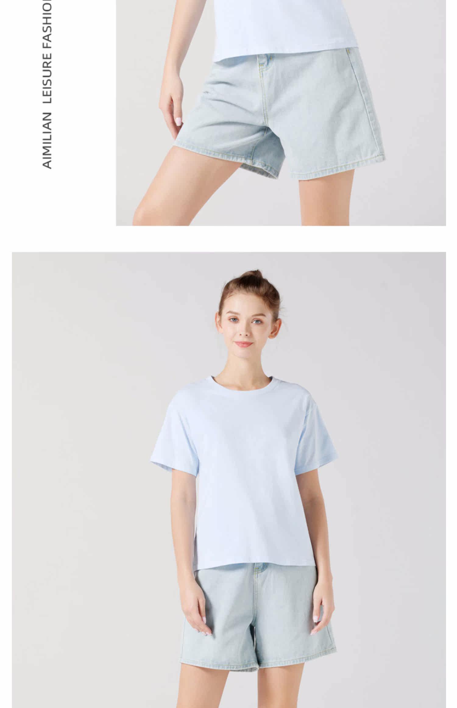 艾米恋 Синяя летняя хлопковая футболка, 2021 года, принт